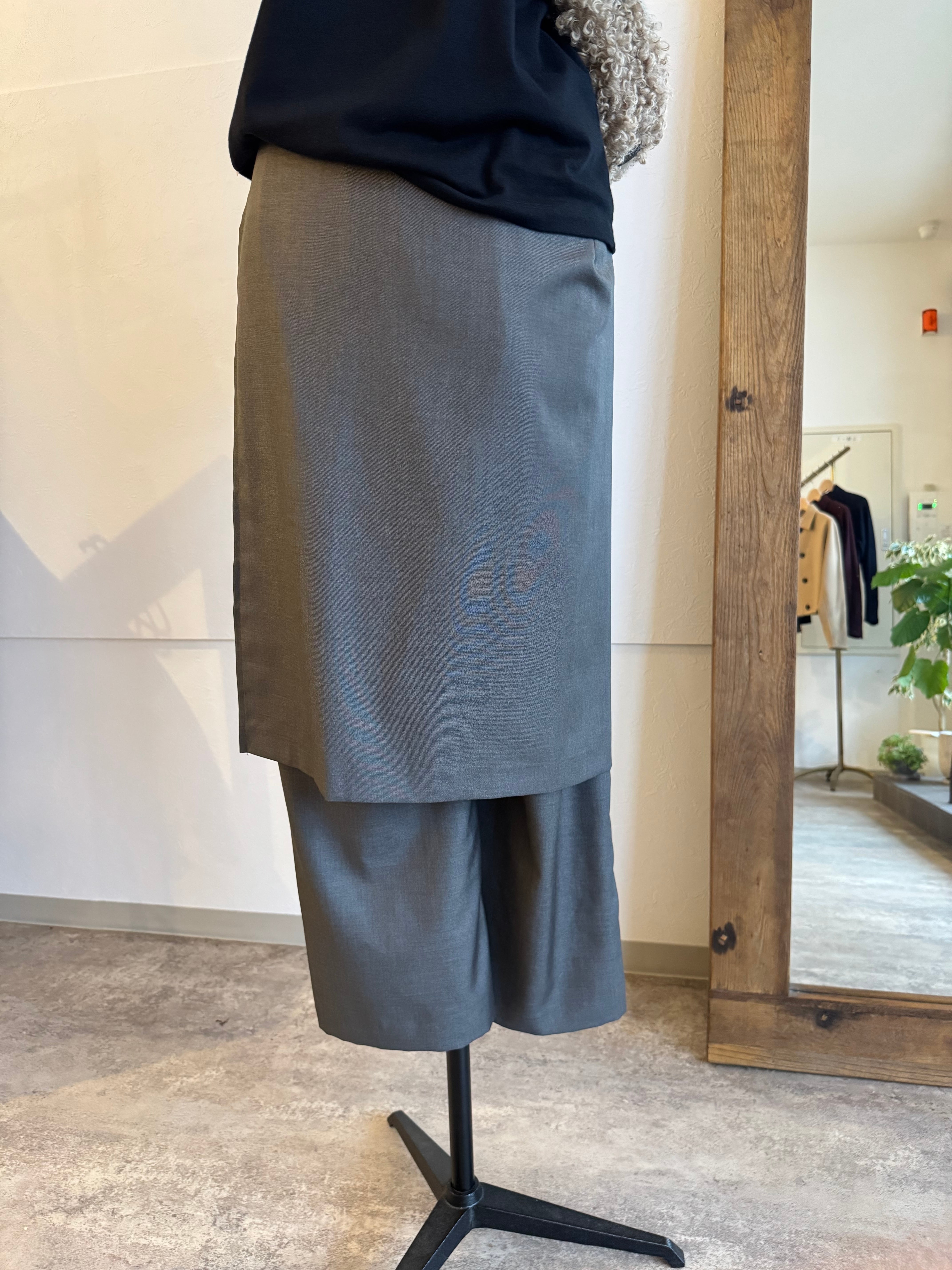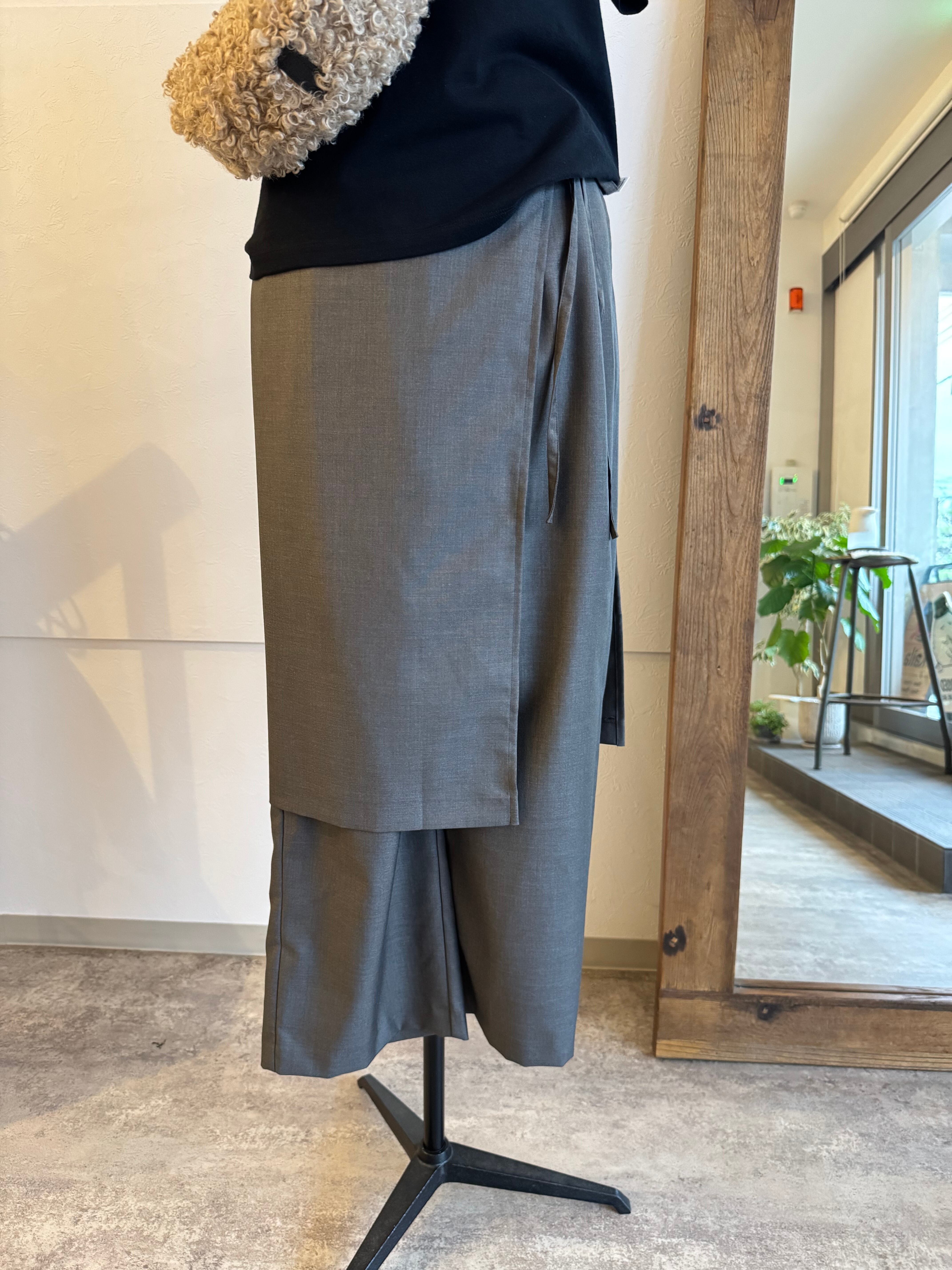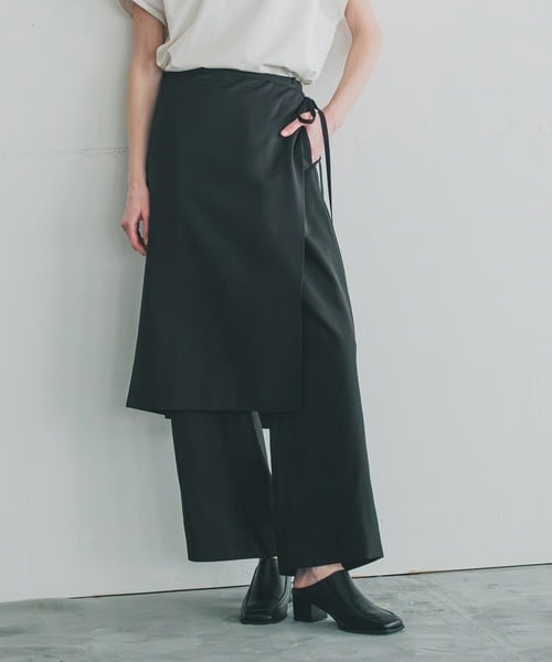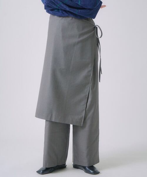 エプロンパーツを巻いてレイヤードを楽しめるパンツです?腰まわりを覆いながら、トレンド感のあるスタイリングを演出します。