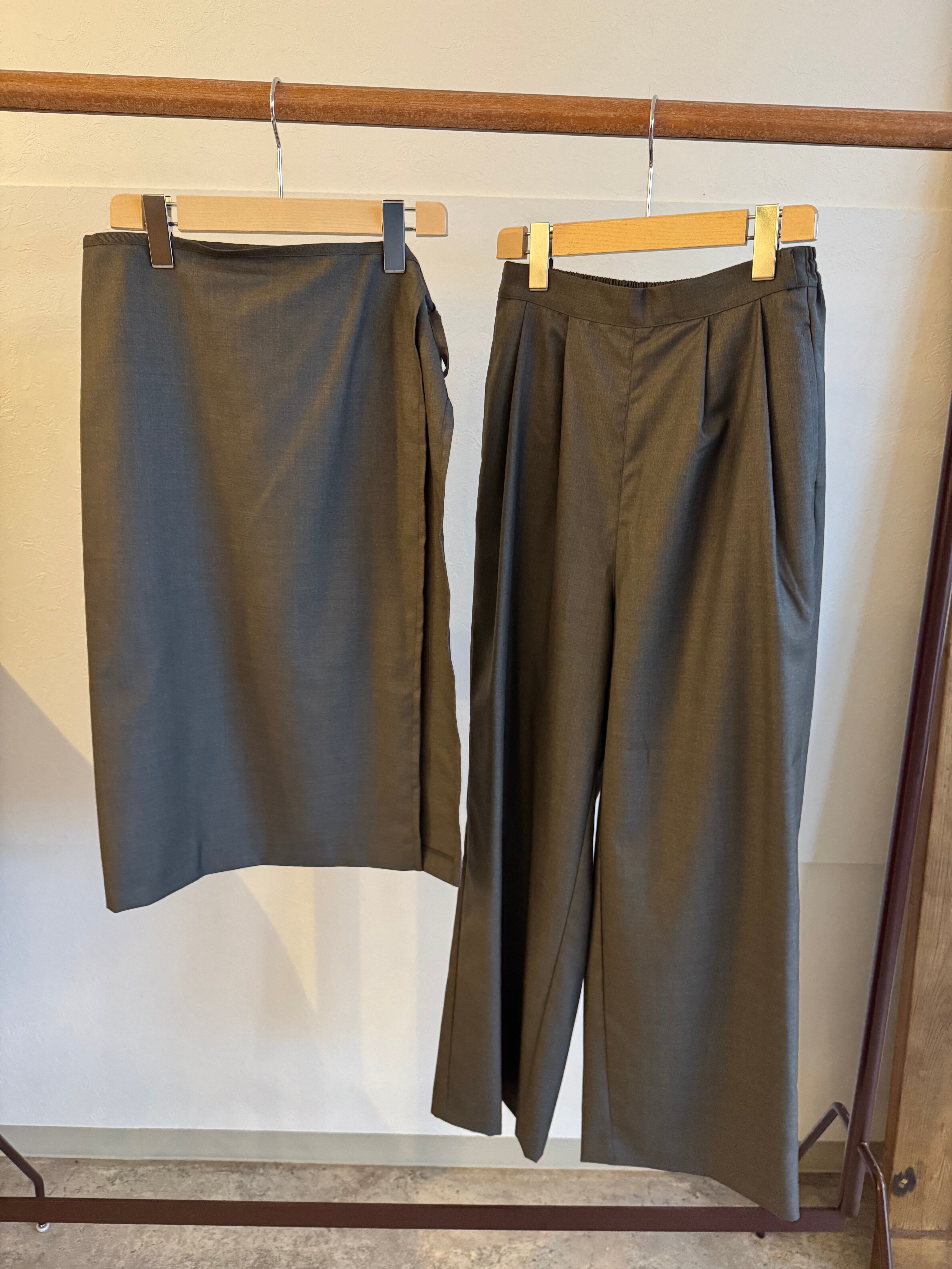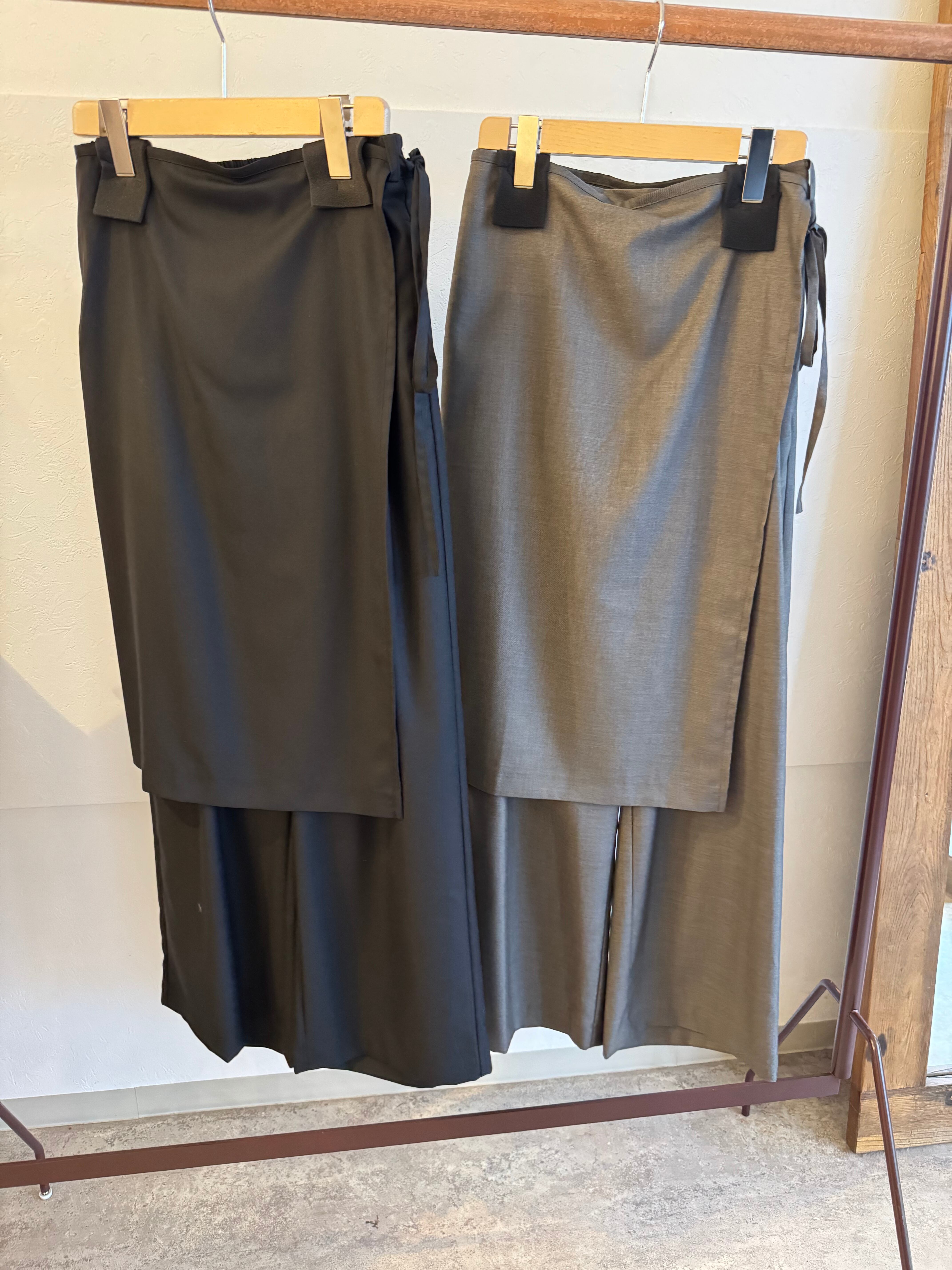 取り外し可能なので、ノーマルなタックパンツとして着用でき、エプロンパーツも他のボトムとのスタイリングが可能です。