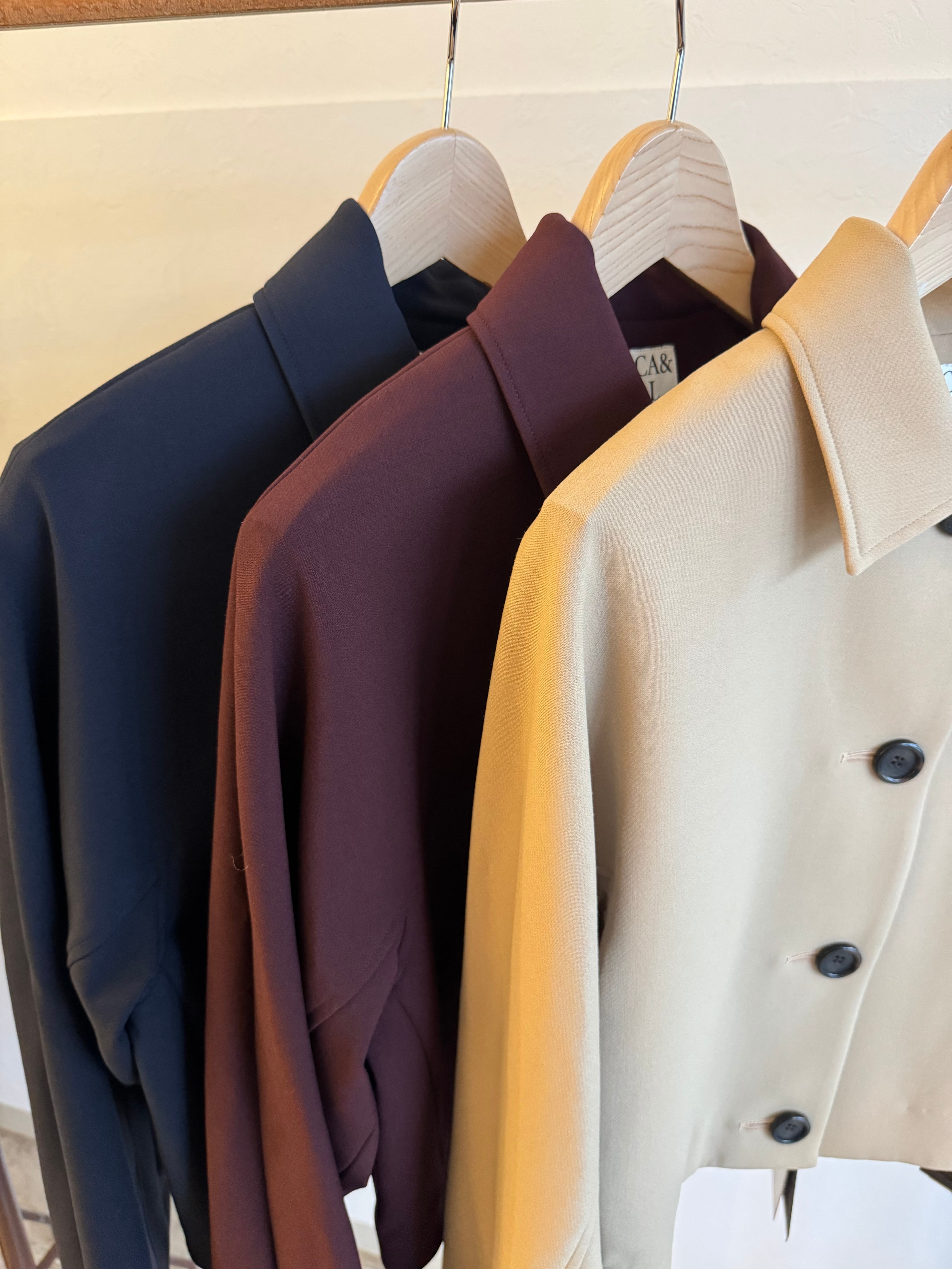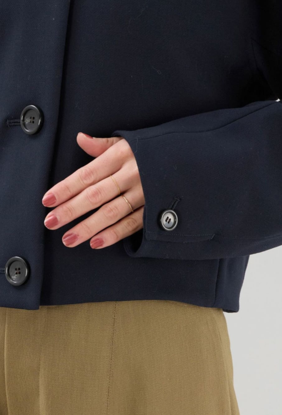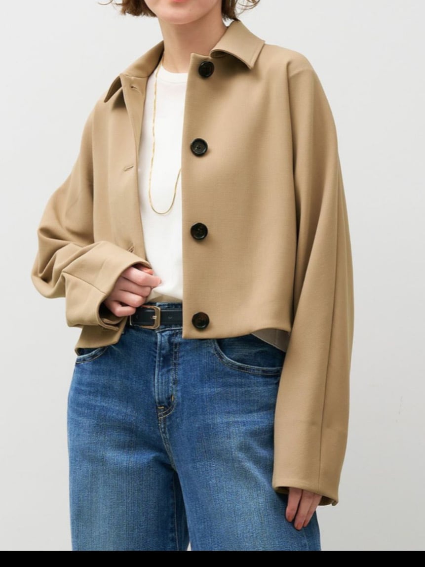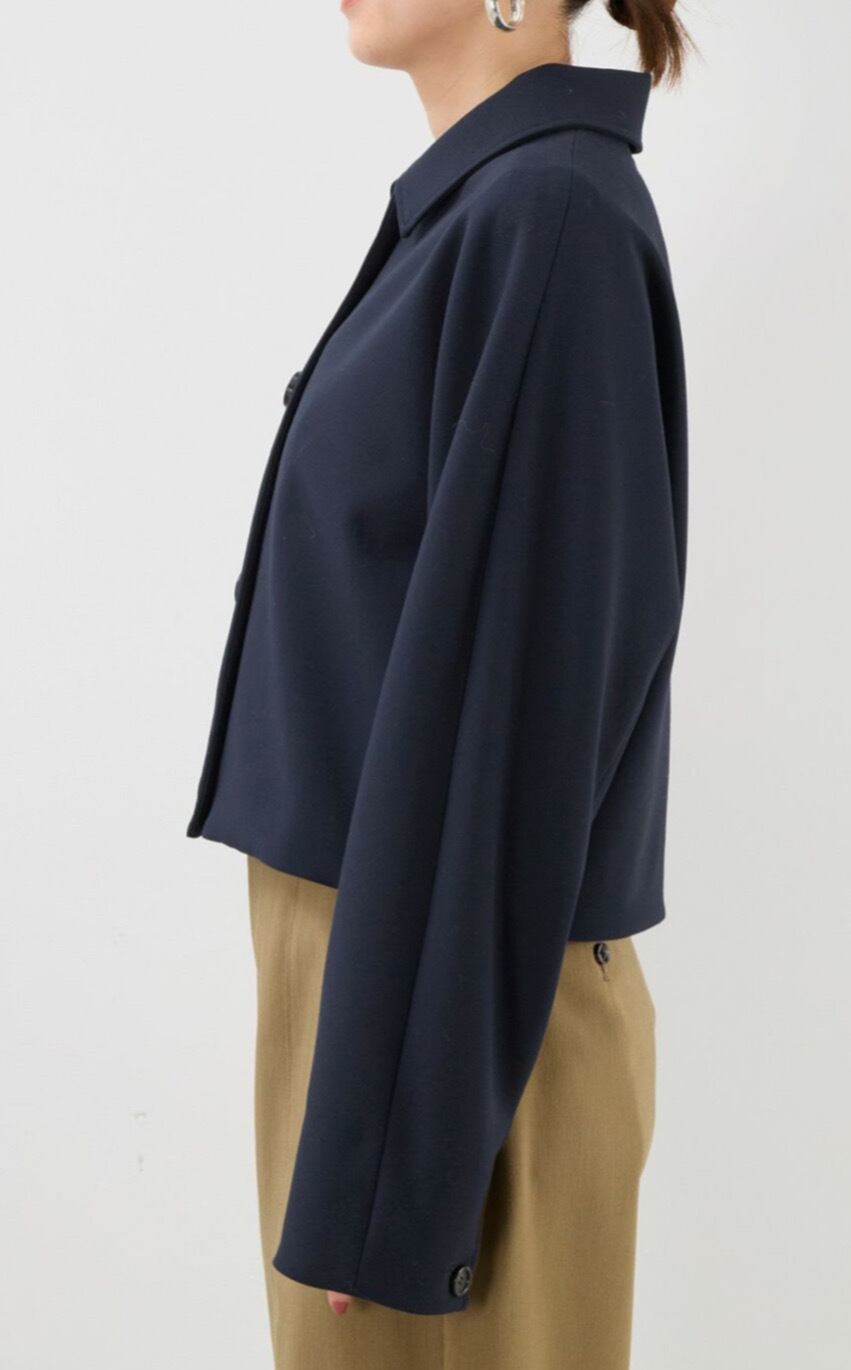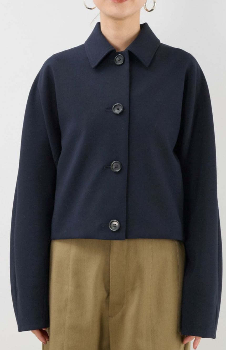 コンパクトな丈感とスリーブの丸みかわ特徴のショートコートです。