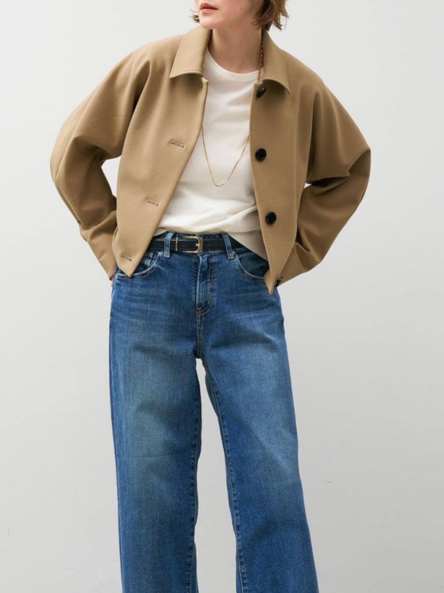 さっと羽織るだけで旬な着こなしが叶うショートステンカラーコート。