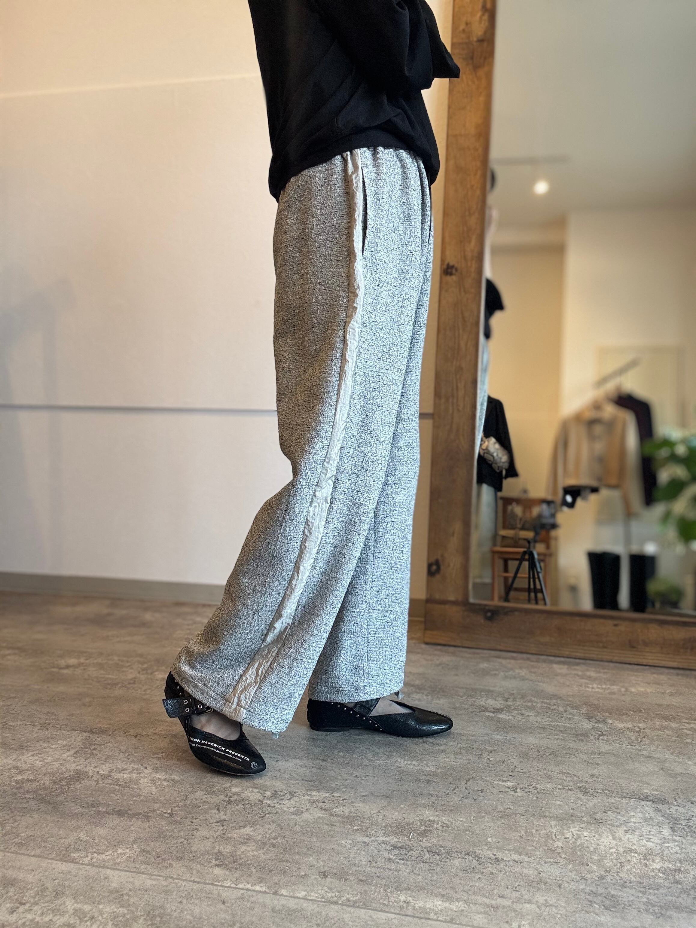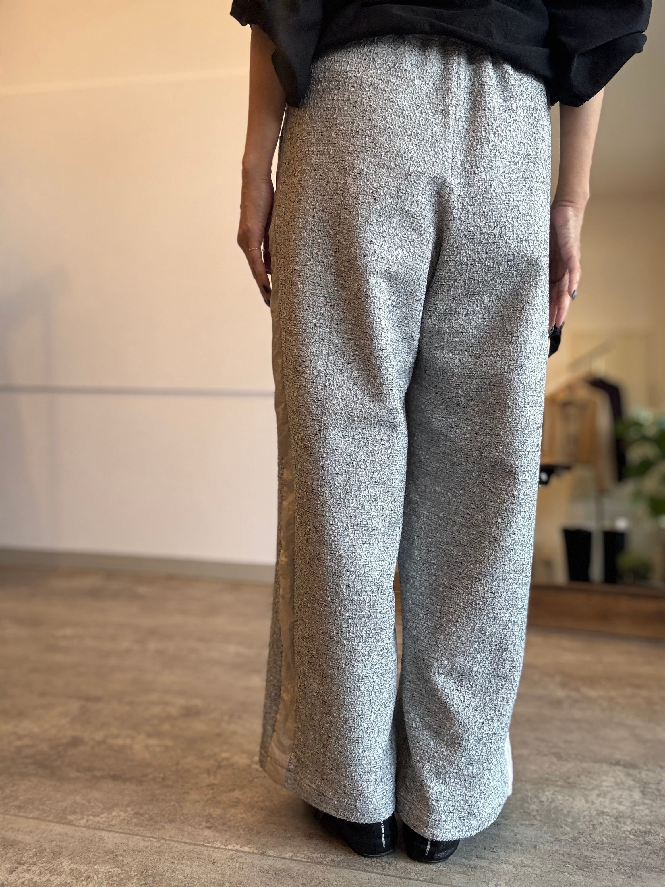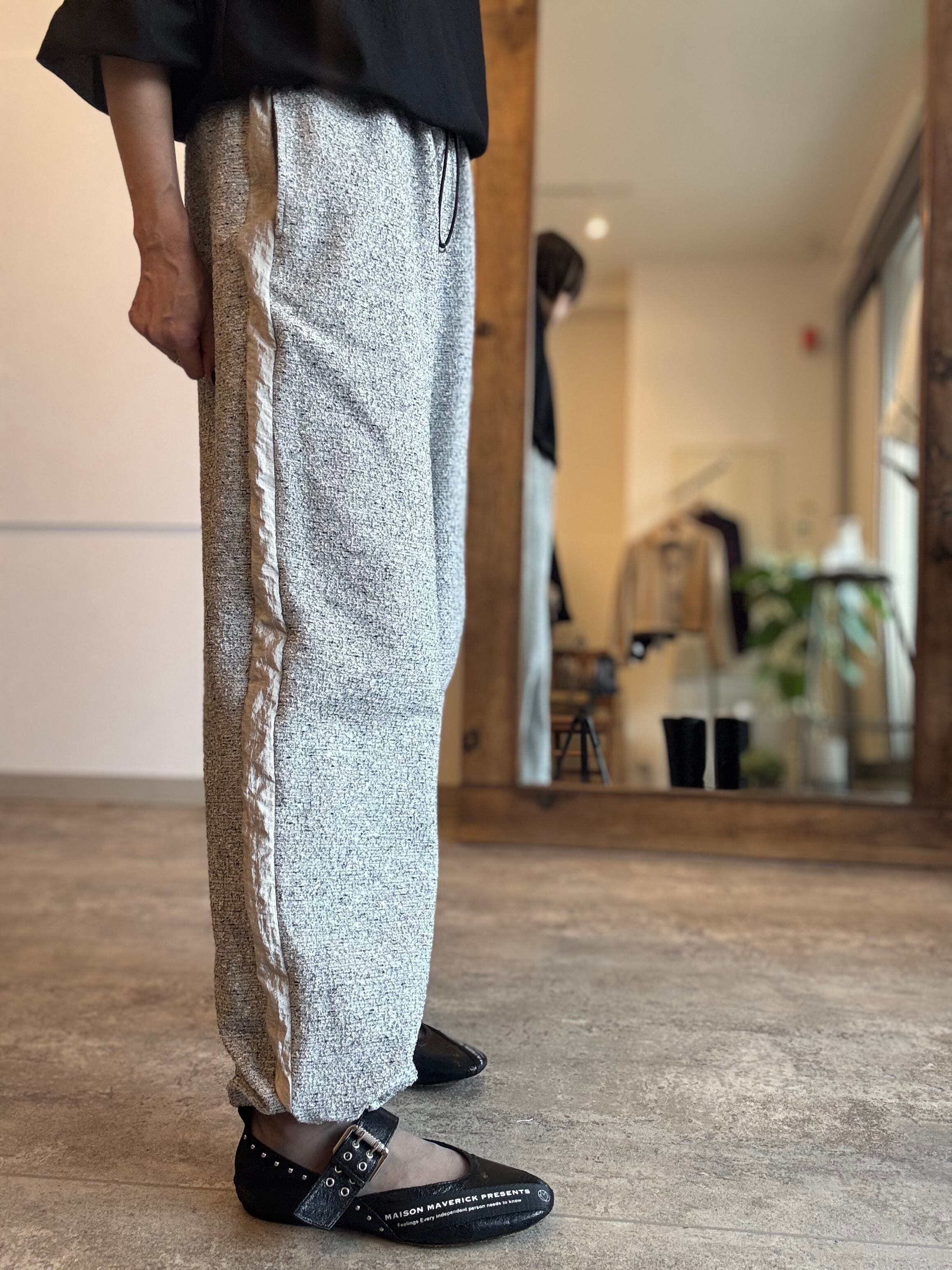 ストレッチが効いていて穿き心地の良いツイードジャージ素材のトラックパンツ。