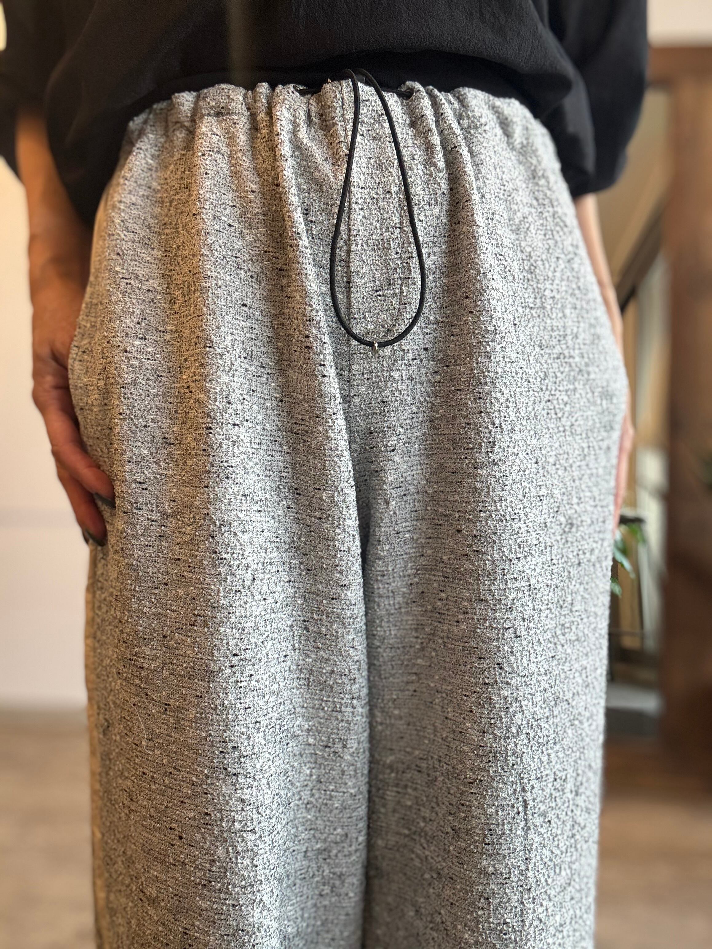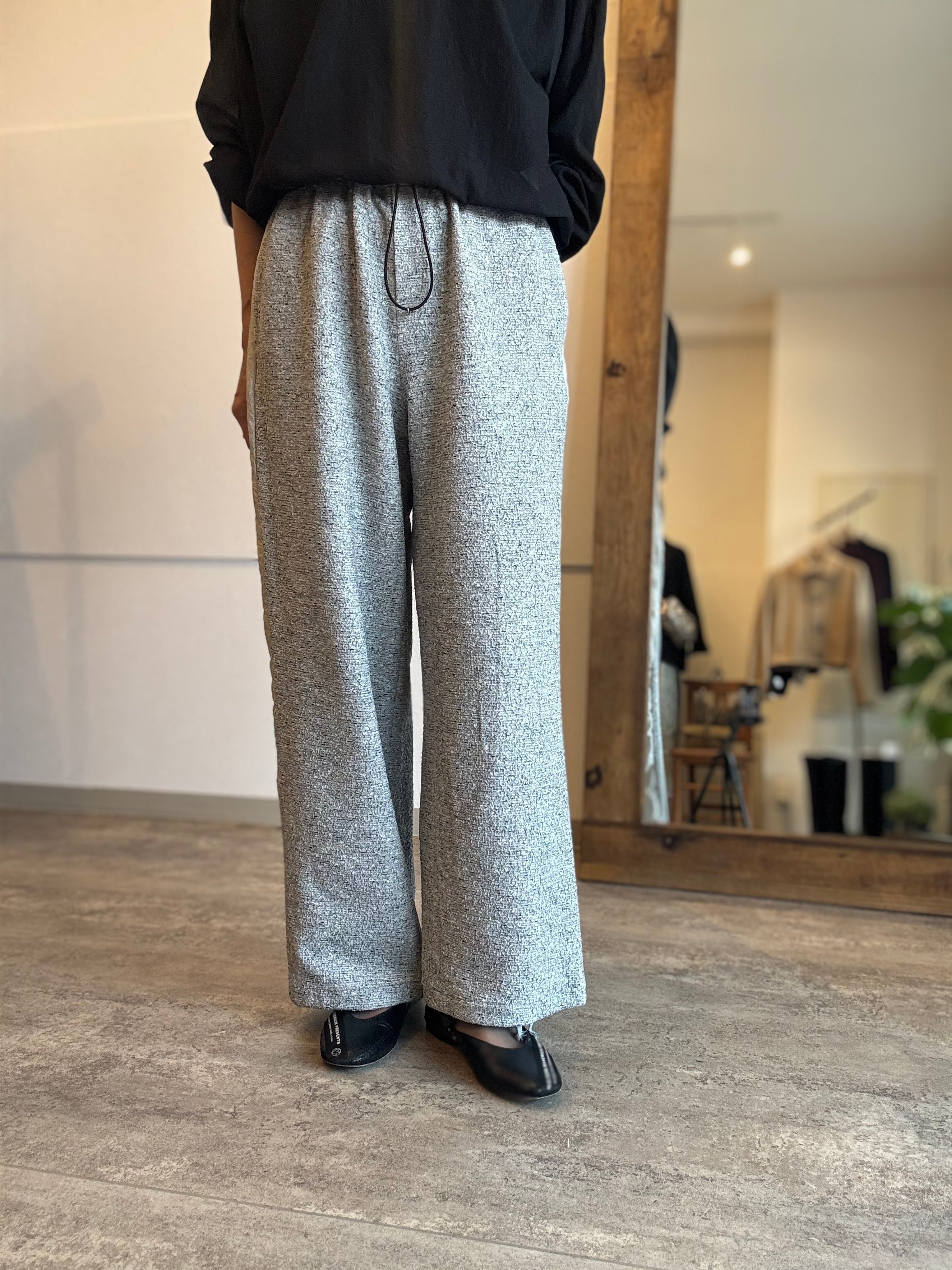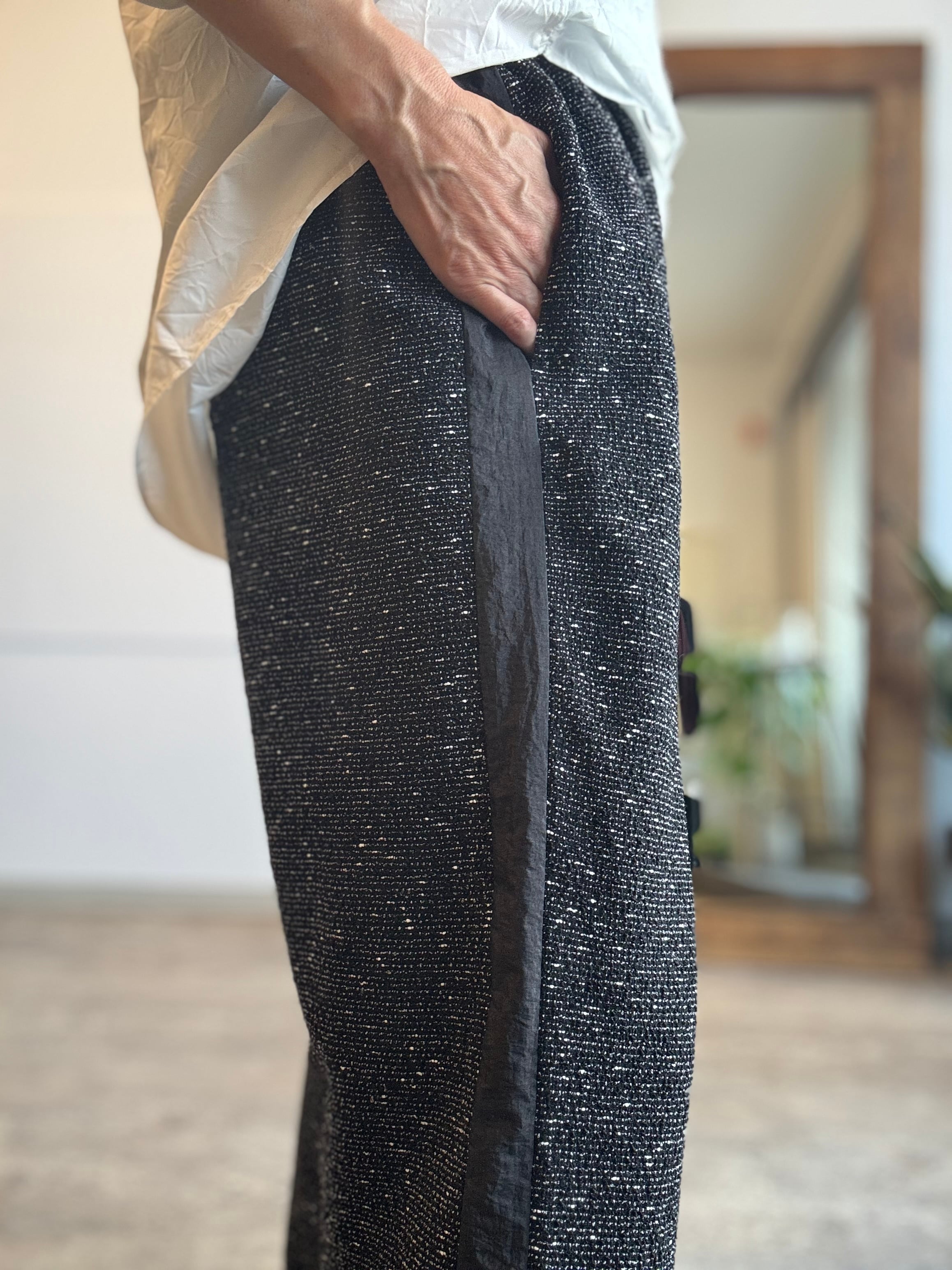 ストレッチが効いていて穿き心地の良いツイードジャージ素材のトラックパンツ。
