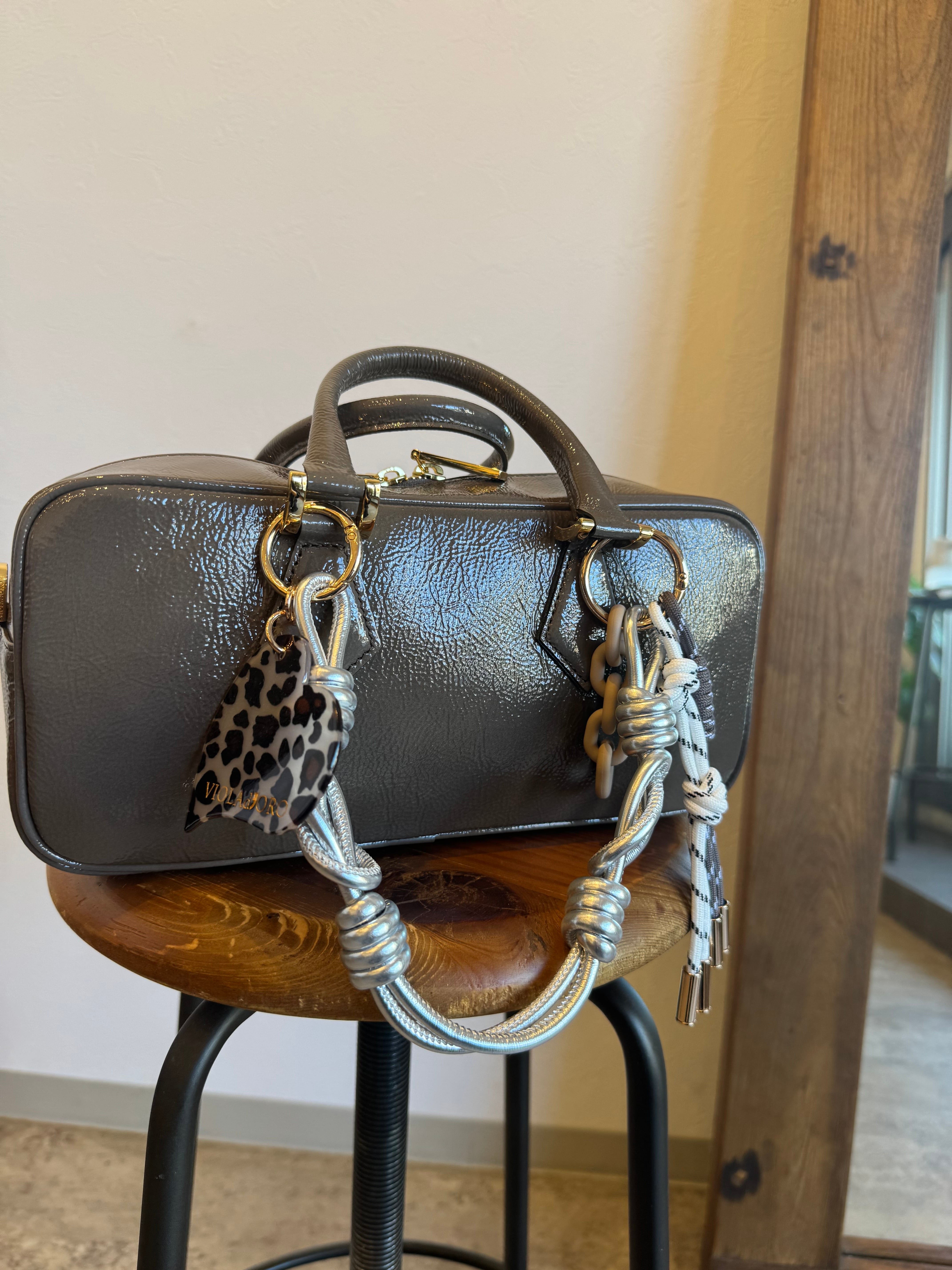 オリジナルロゴのアクリルパーツが付いたバッグチャーム。