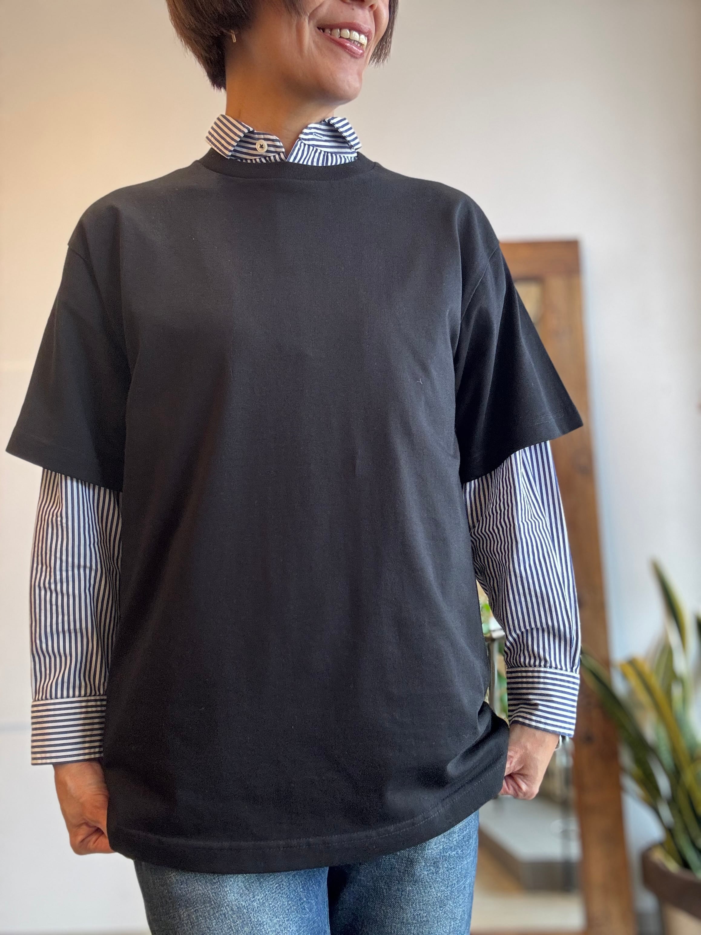 一枚着はもちろん、ジャケットのインナーやロンTやシャツの上からレイヤードしたり、オールシーズン使える1枚です。
