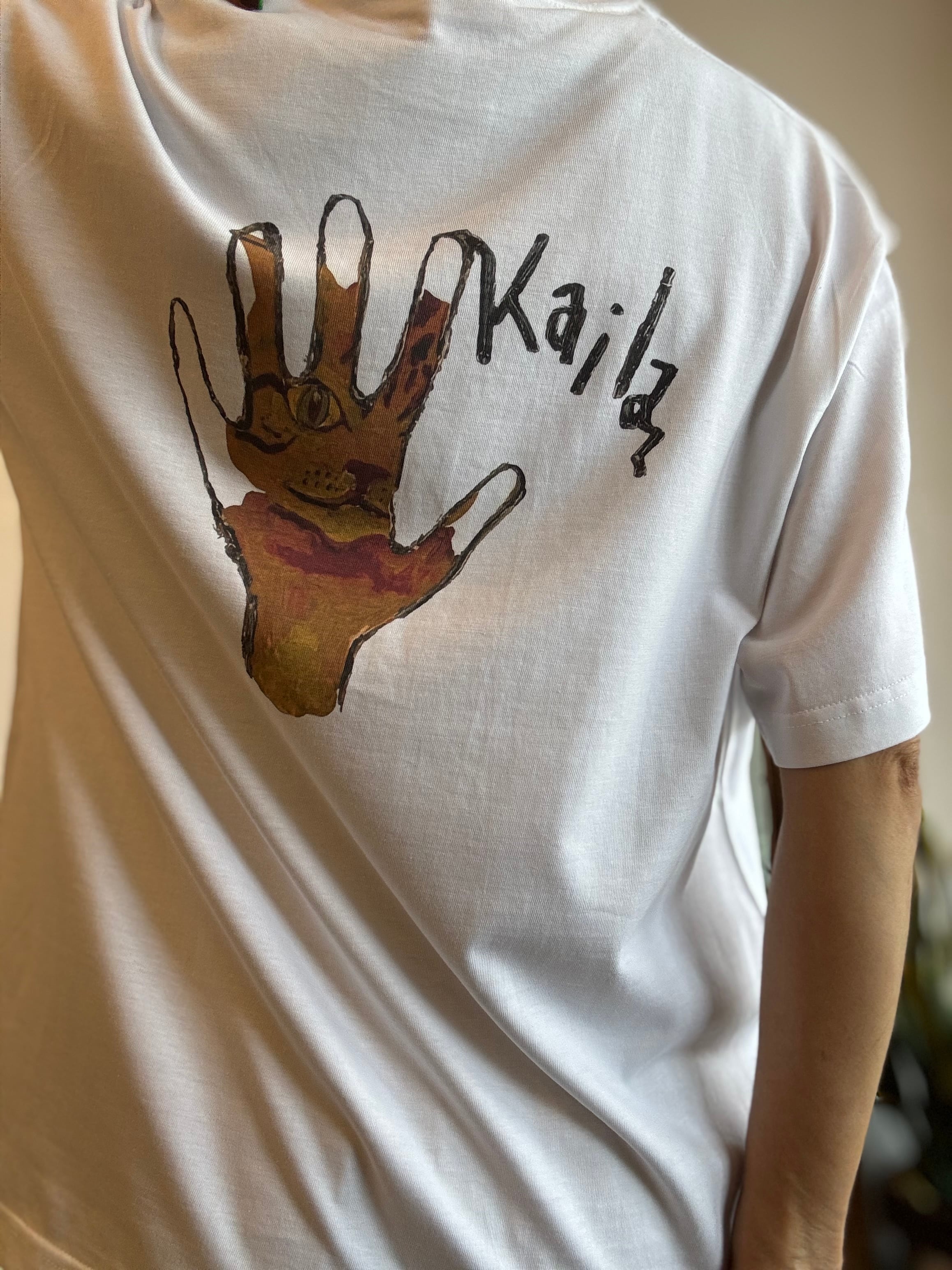 チョークアート作家のmottokakitaiさん描き下ろしデザインの!5周年Kaila オリジナルアートを背面にプリントした半袖Tシャツ。
