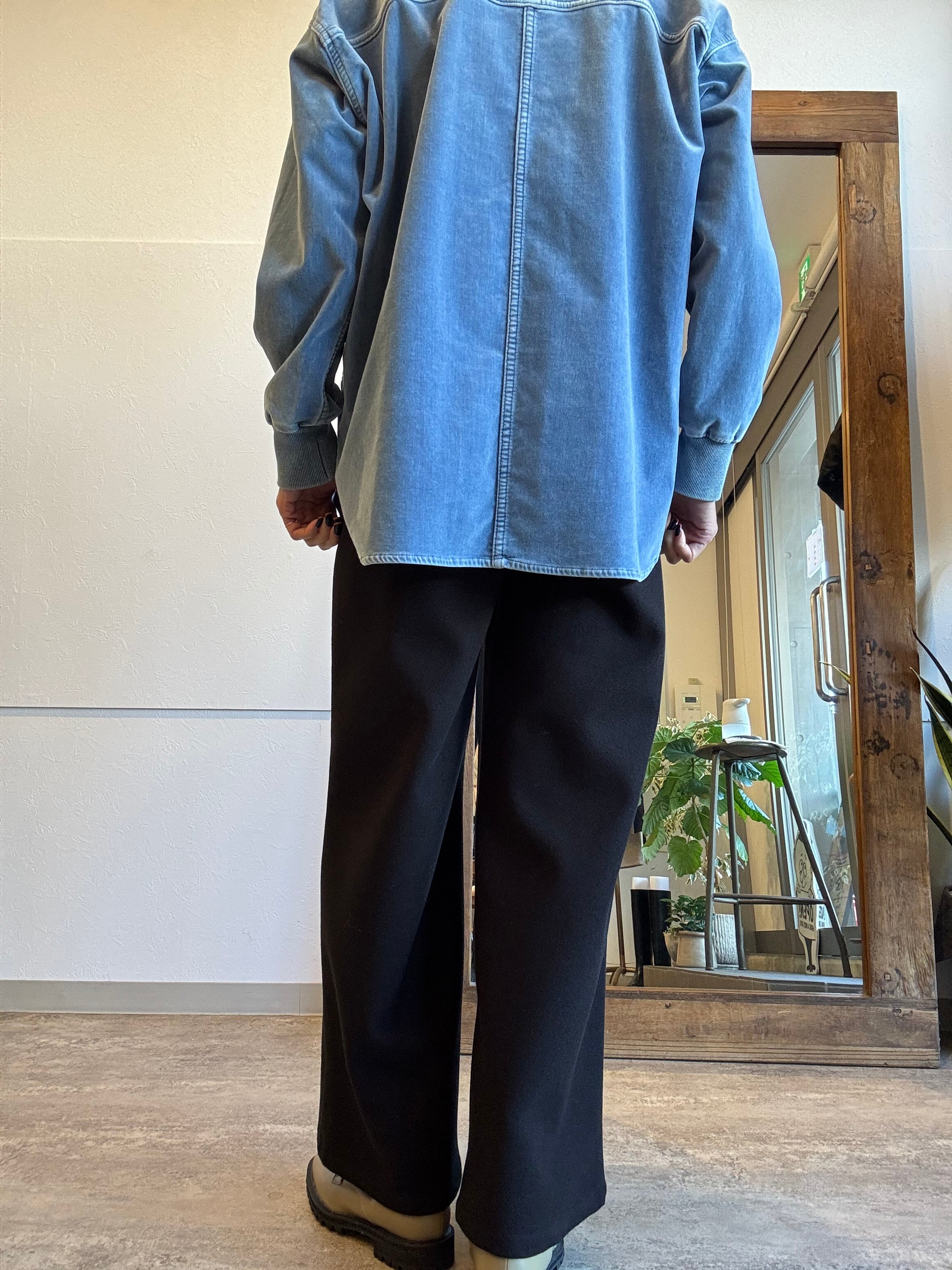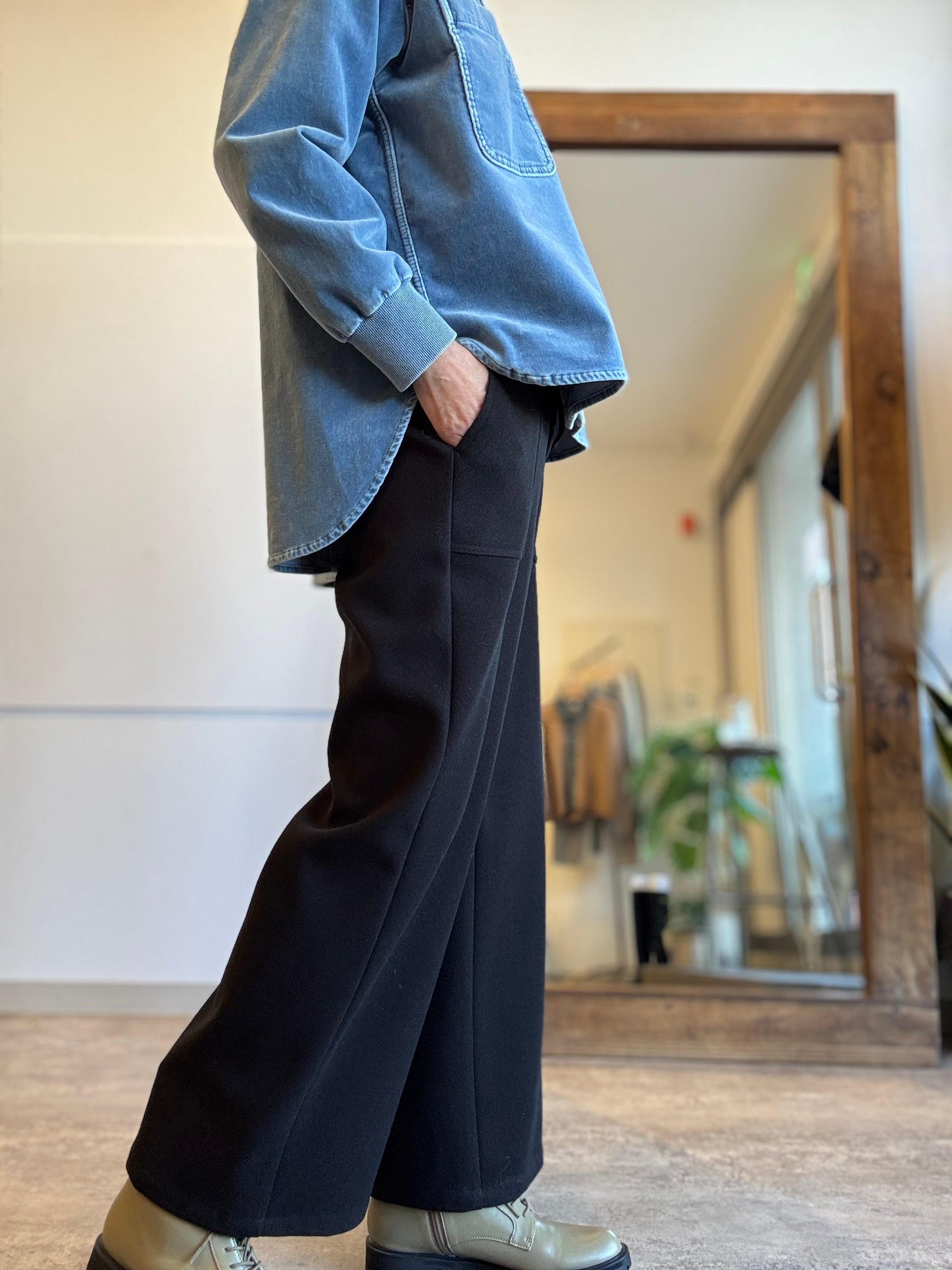 程よいセミワイドシルエットで脚長効果も期待できるキレイ目カジュアルスタイルに。