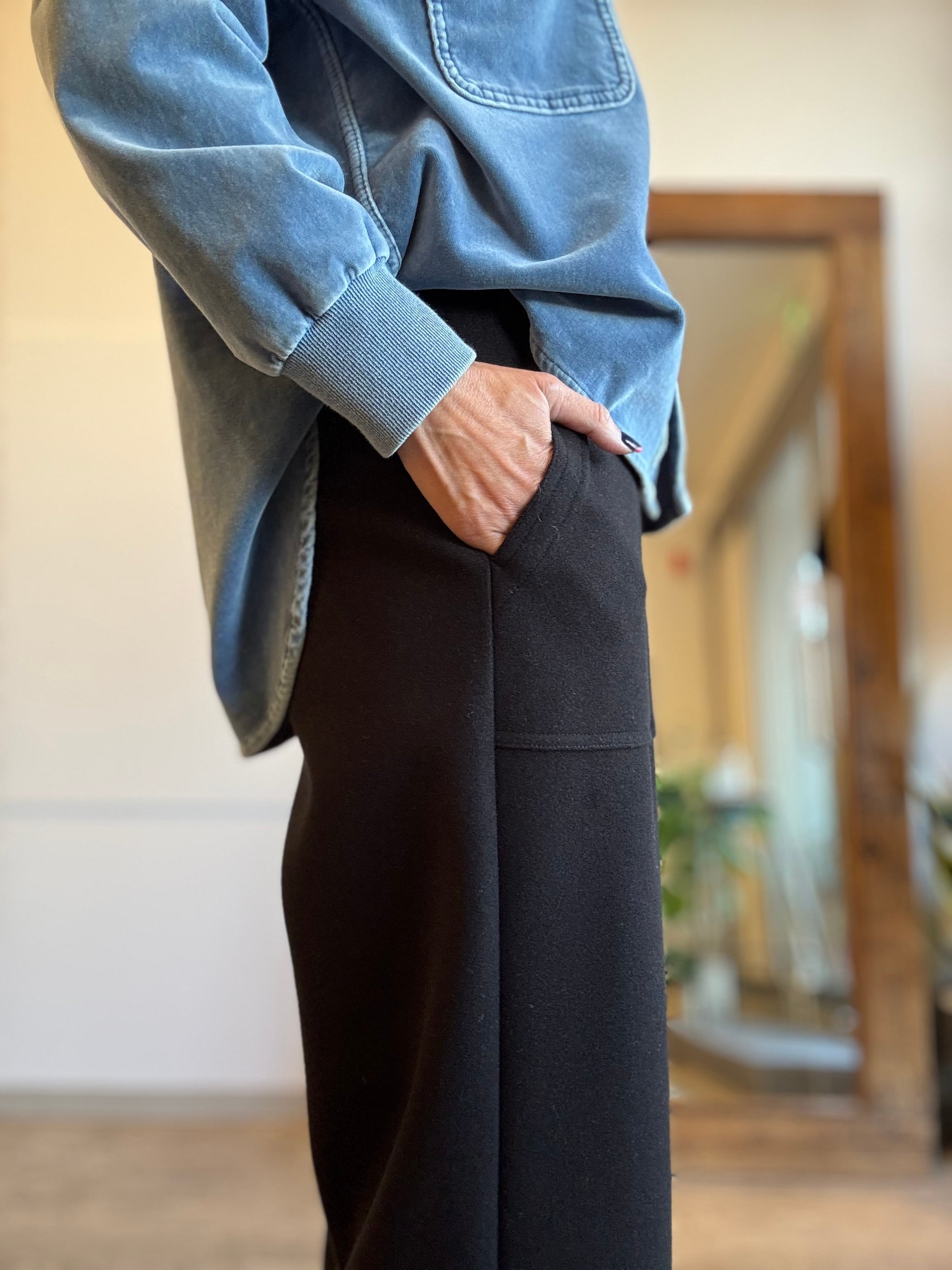 ウエストはリブ仕様で履き心地もラクチンで暖かい。内側にウエストコード付き。