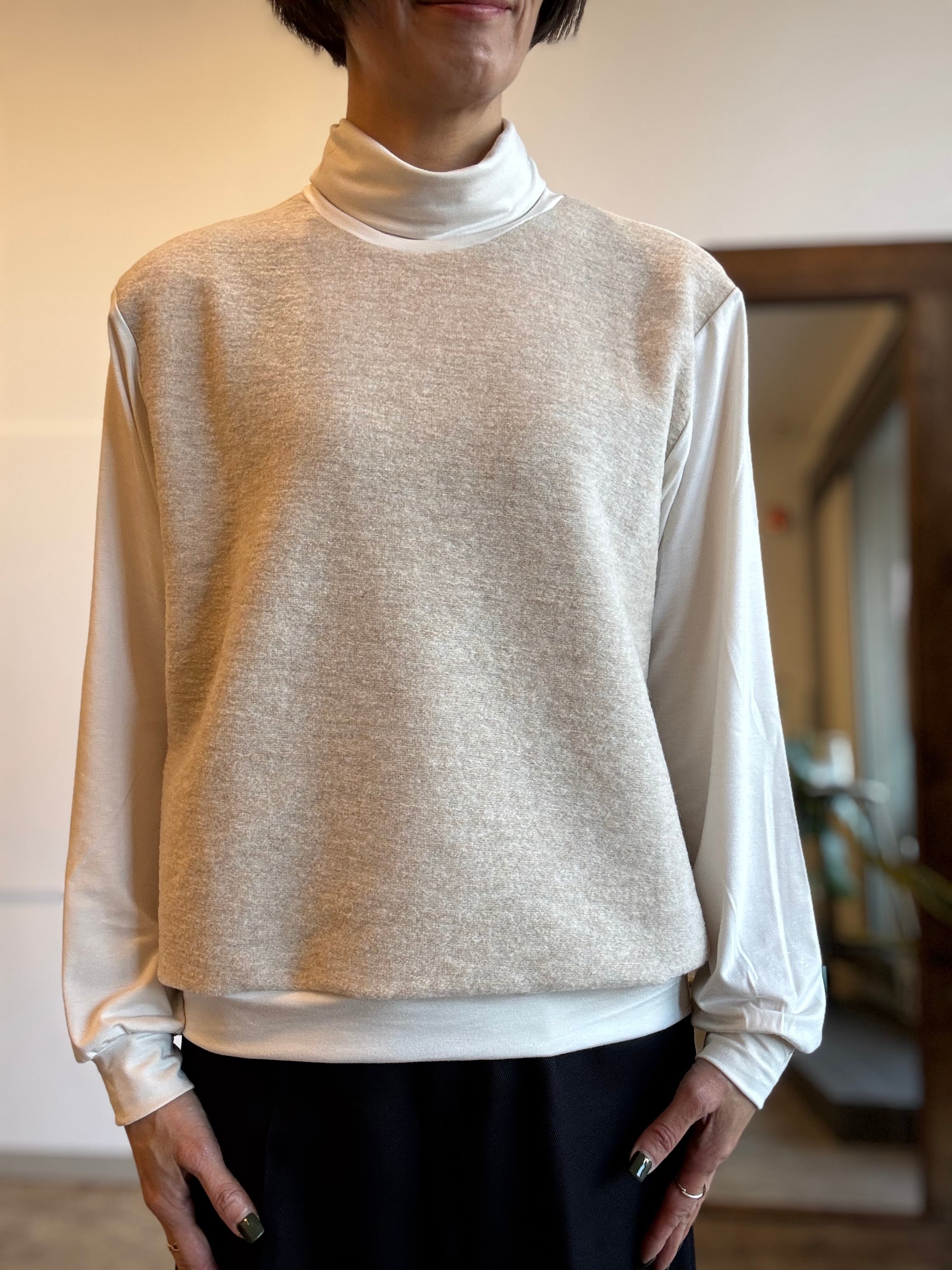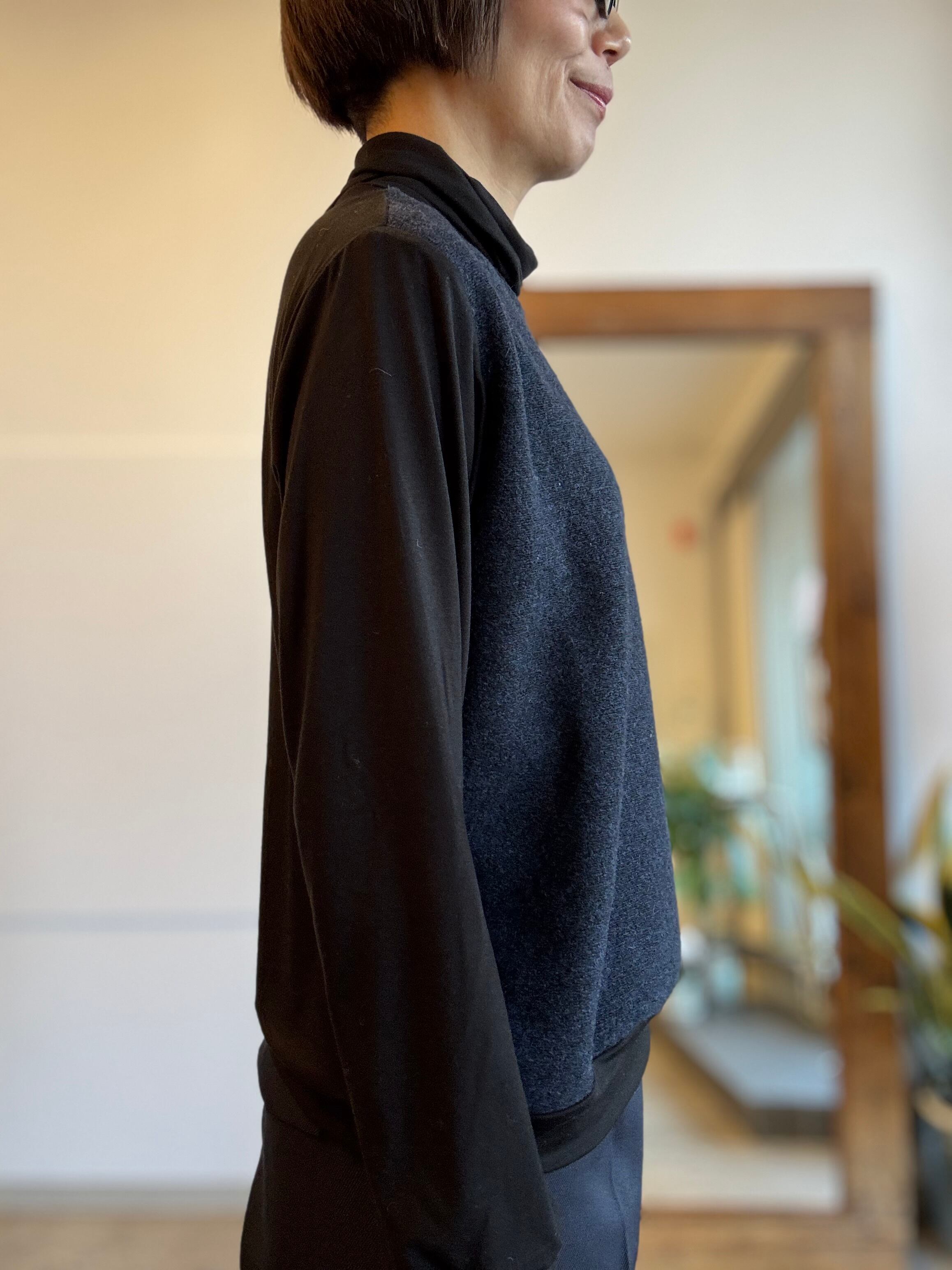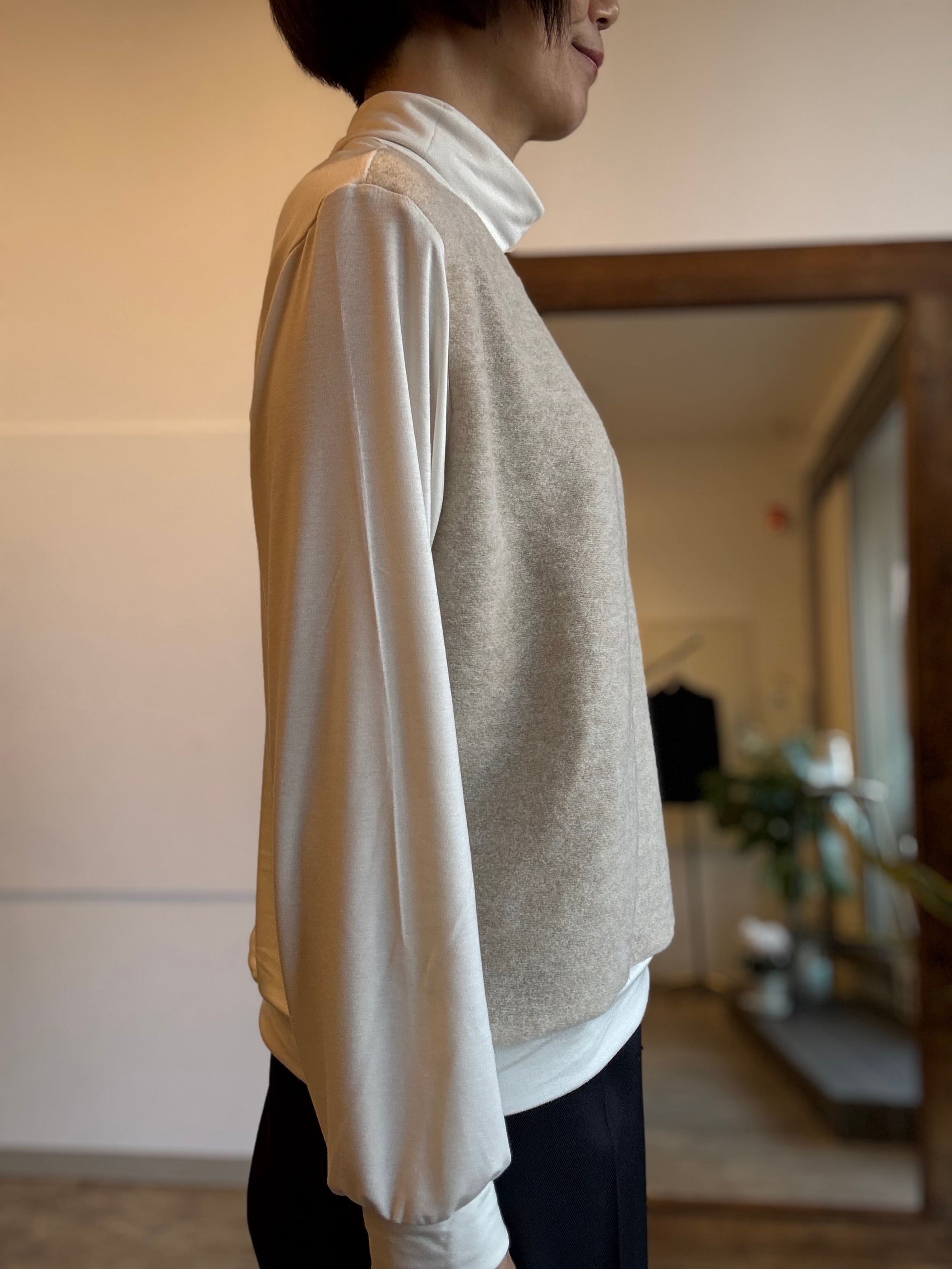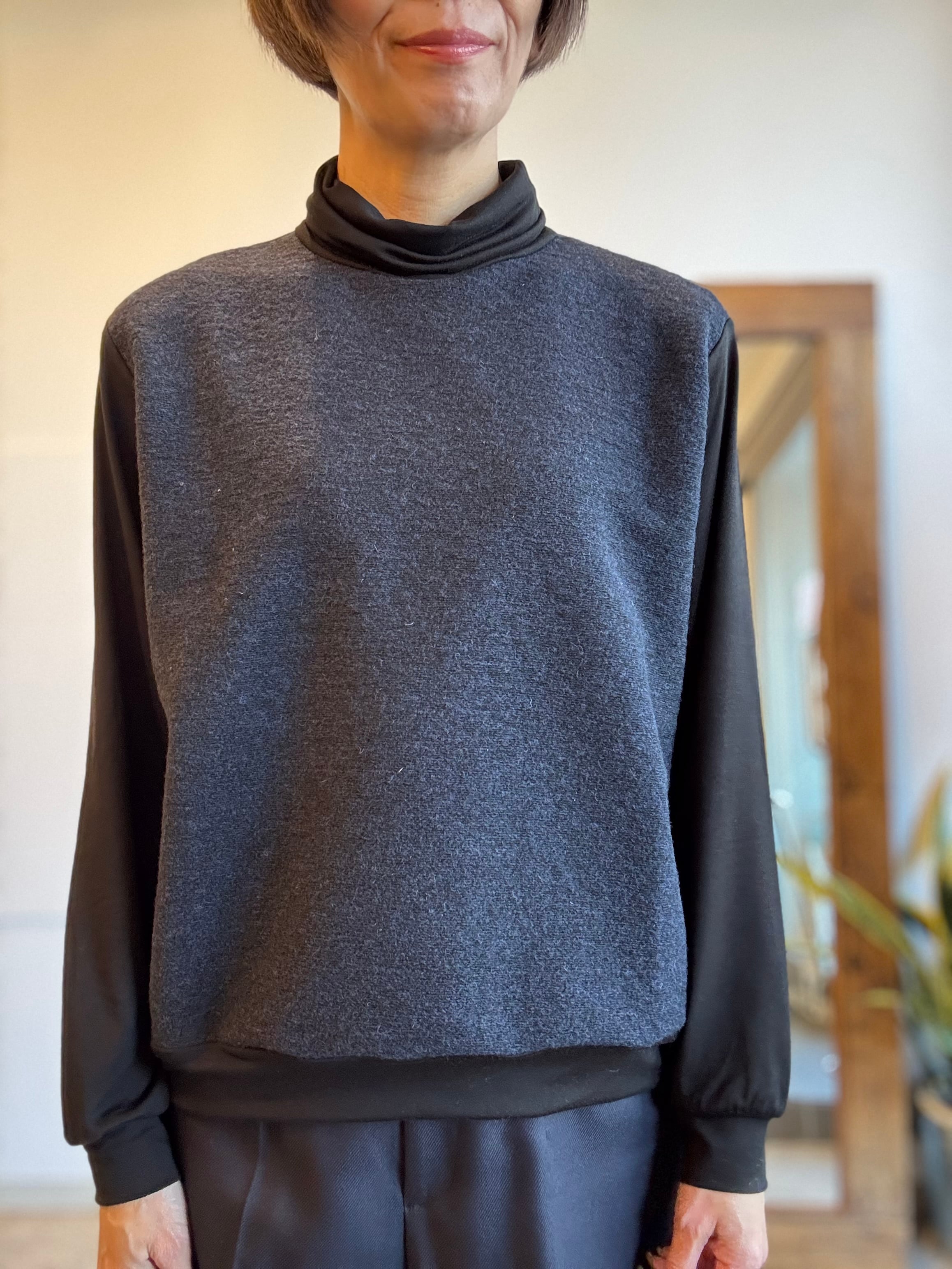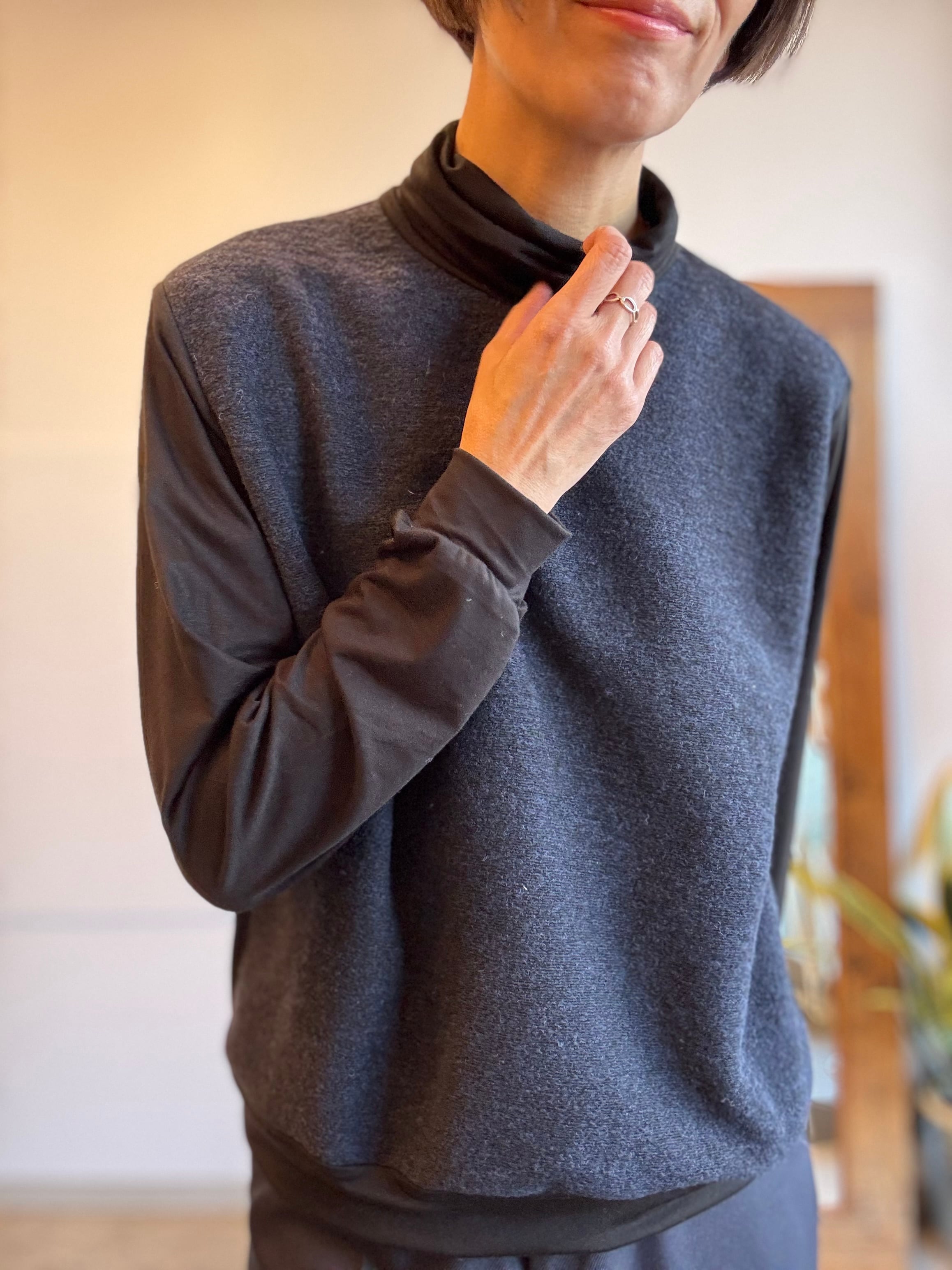 イタリア製のウール混素材を前身頃に切り替えたタートルカットソー。