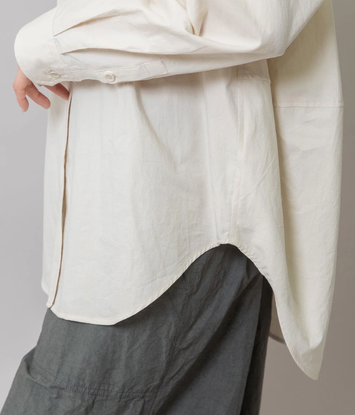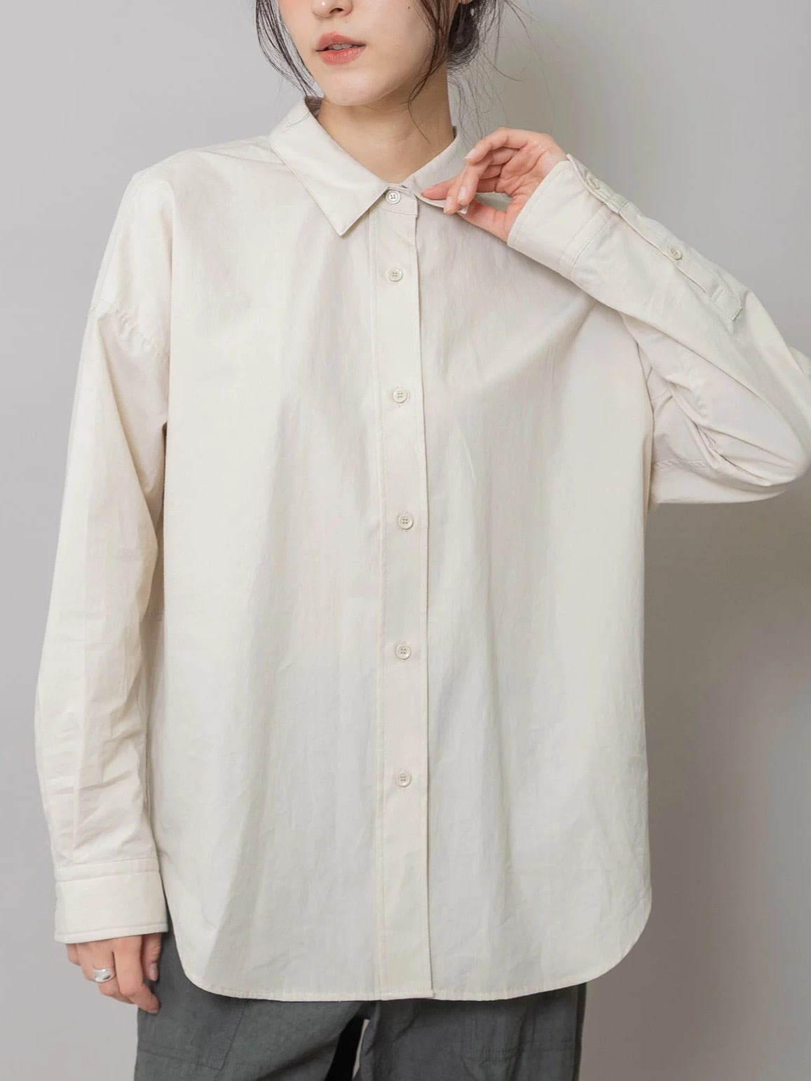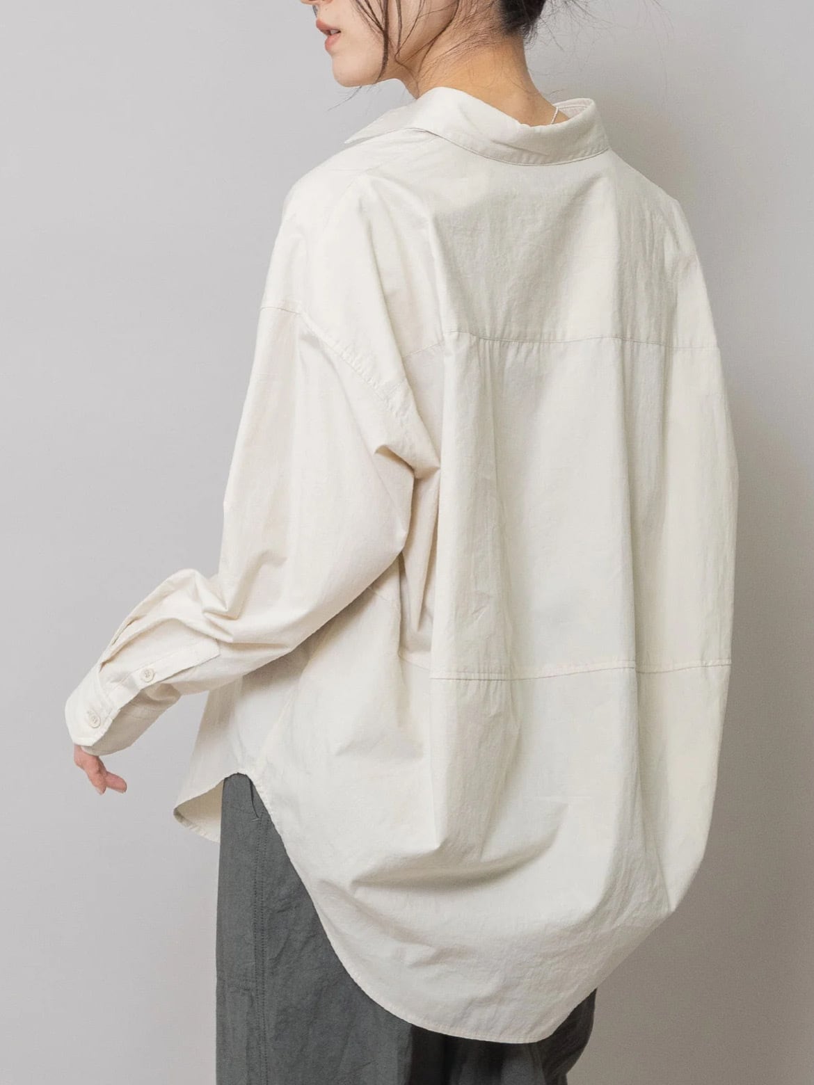 後身頃の分量をたっぷり取り立体感とナチュラルな抜け感を実現した羽織としても使い勝手の良いシャツ。