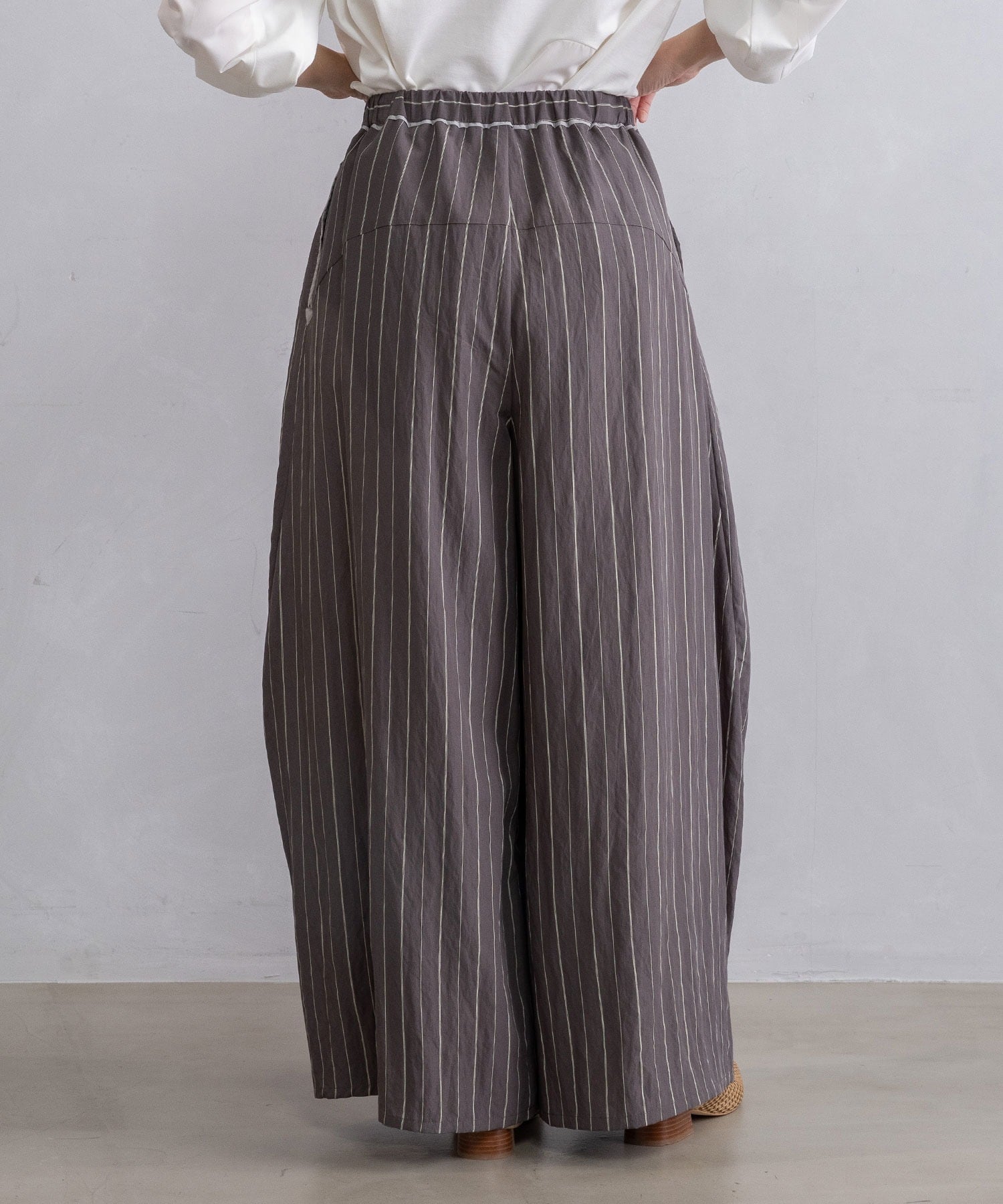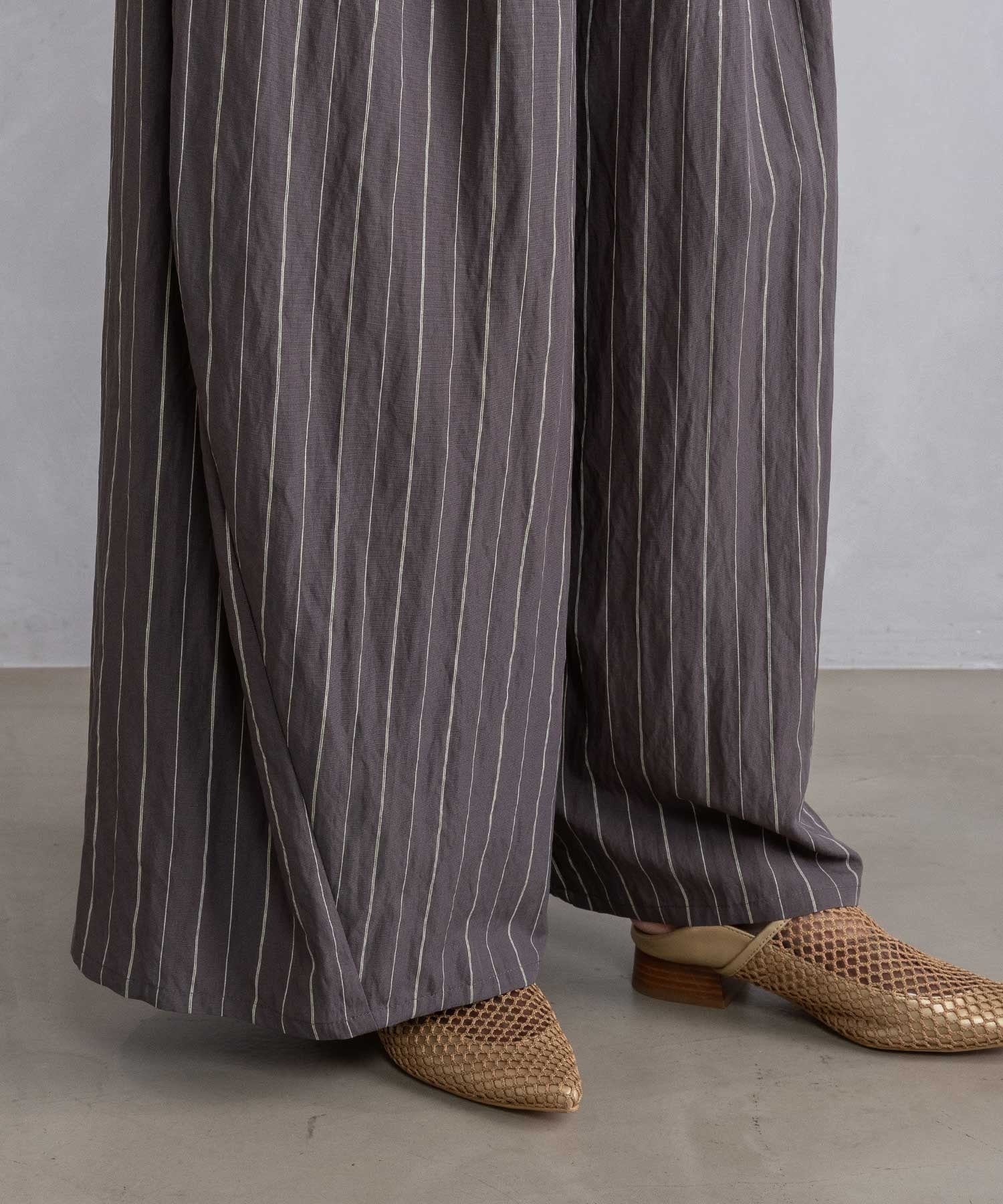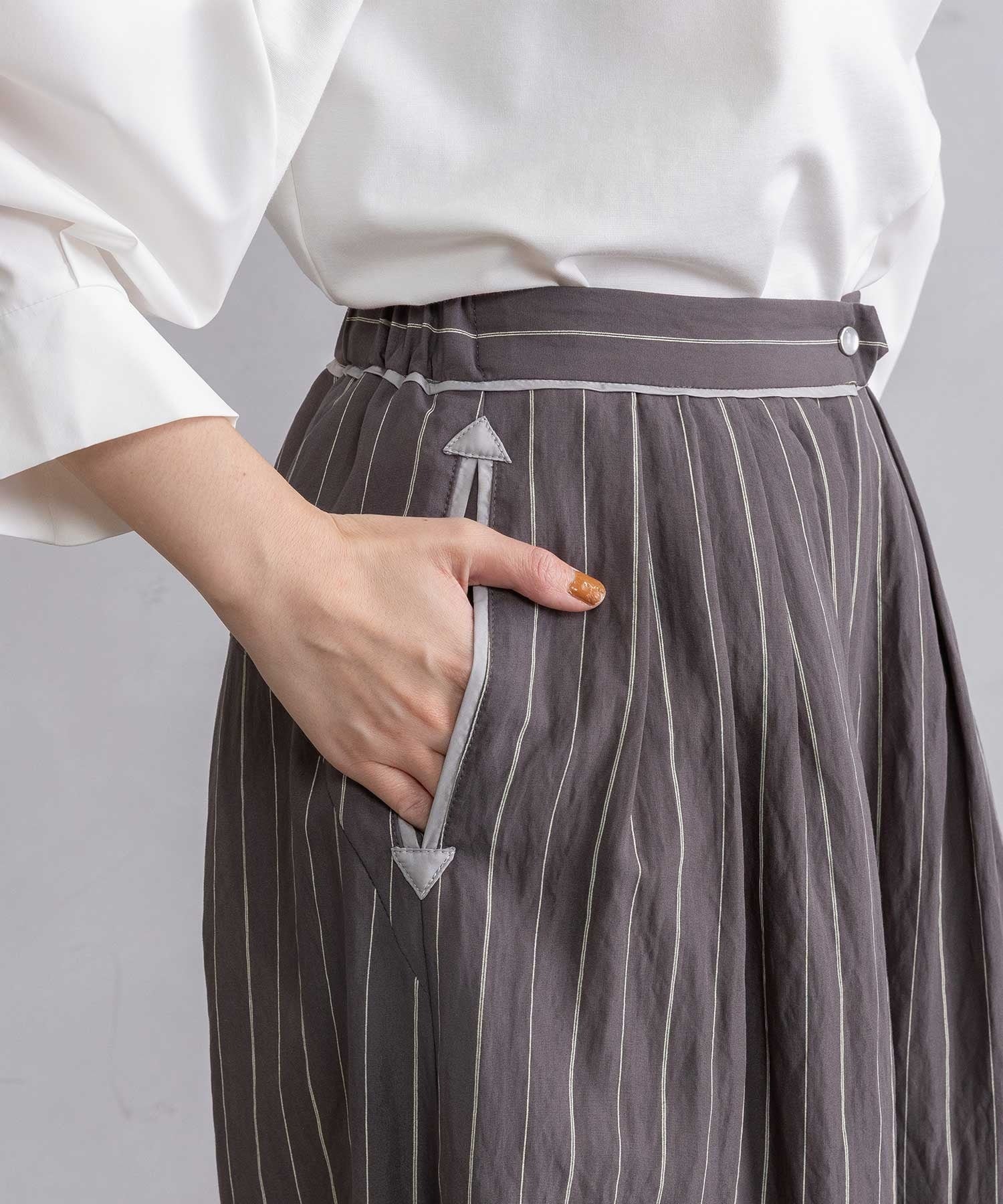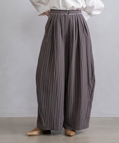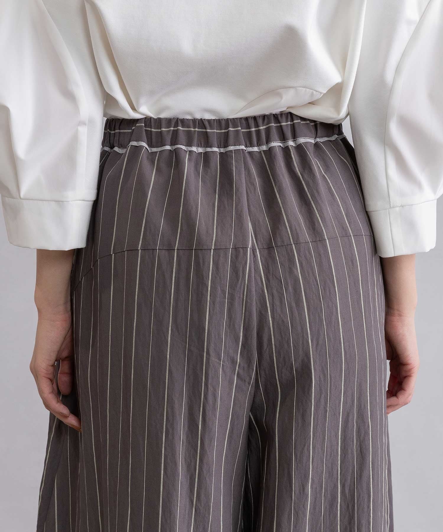 ストライプ柄は縦ラインを強調し、大人のための着映えボトムです。
