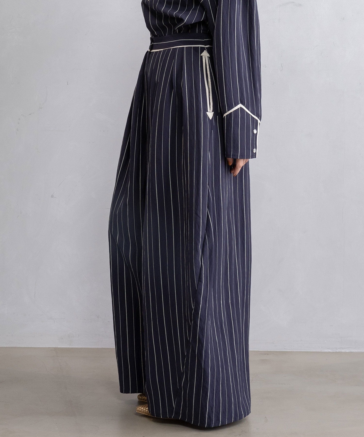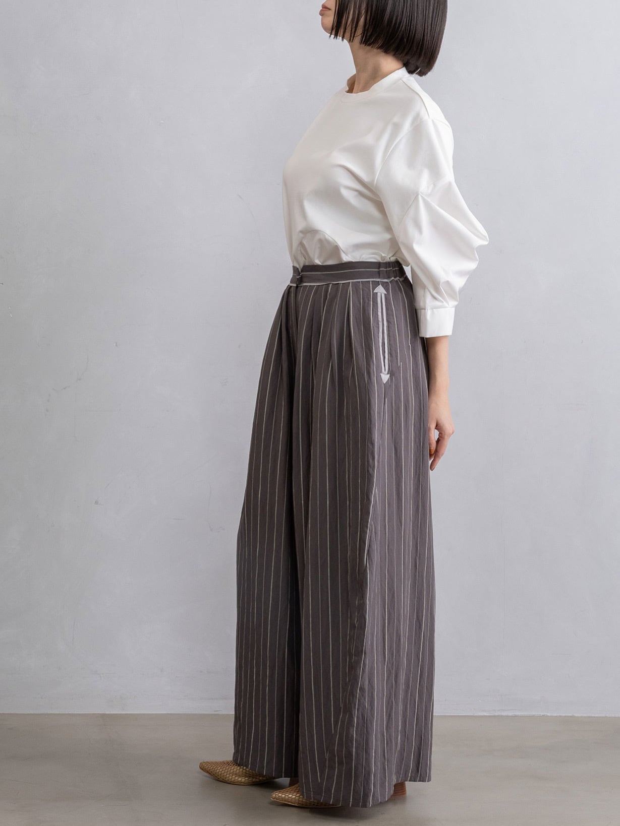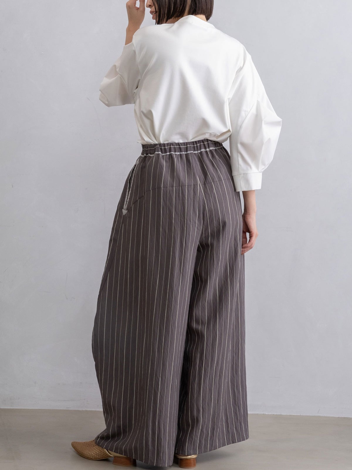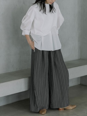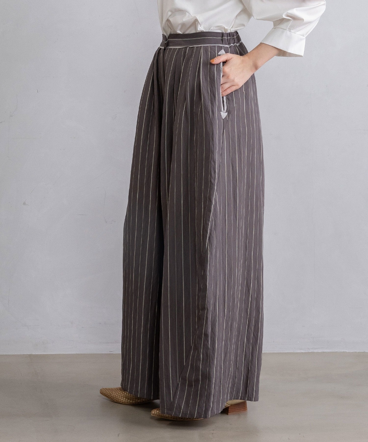 ストライプ柄は縦ラインを強調し、大人のための着映えボトムです。