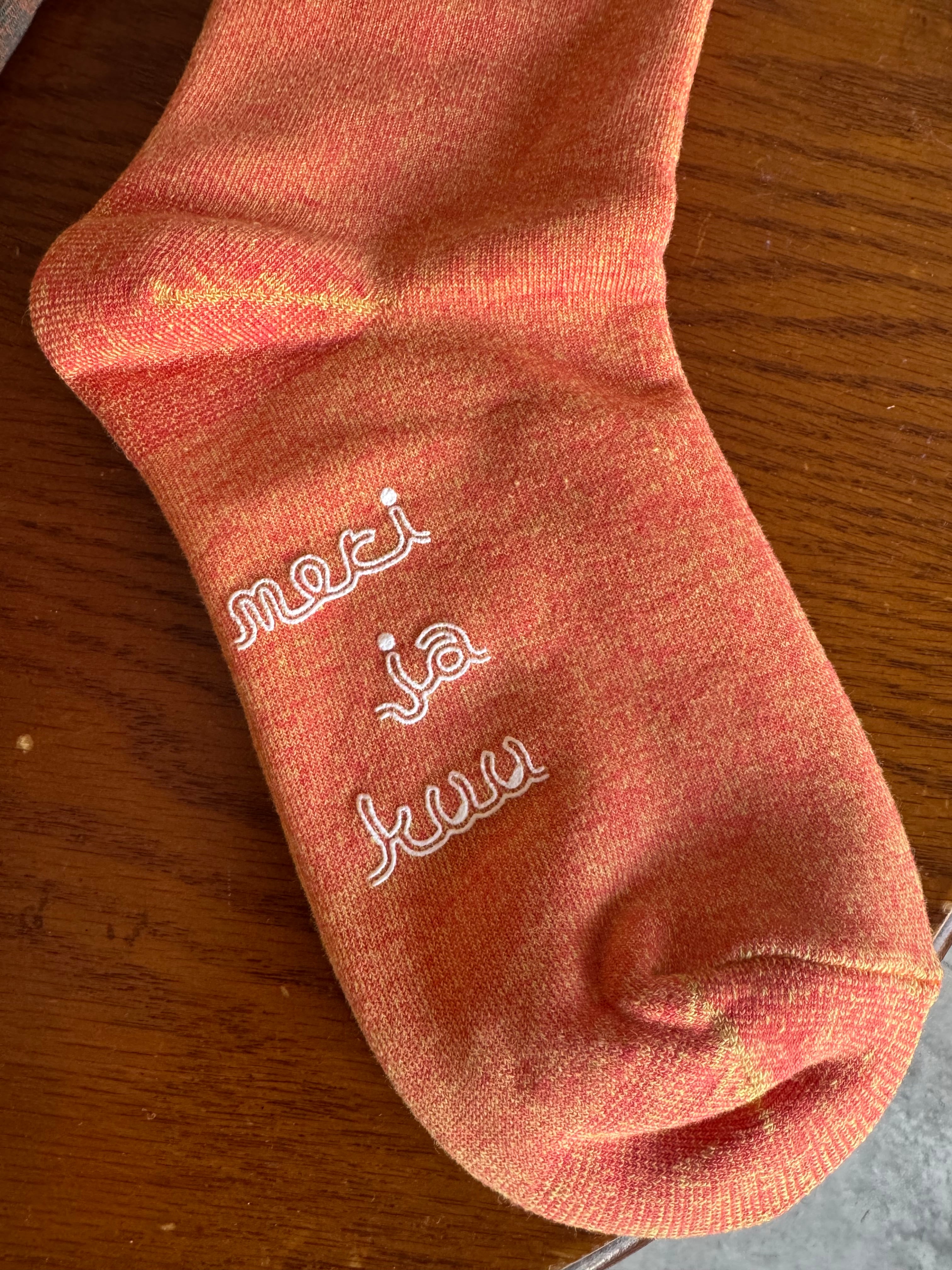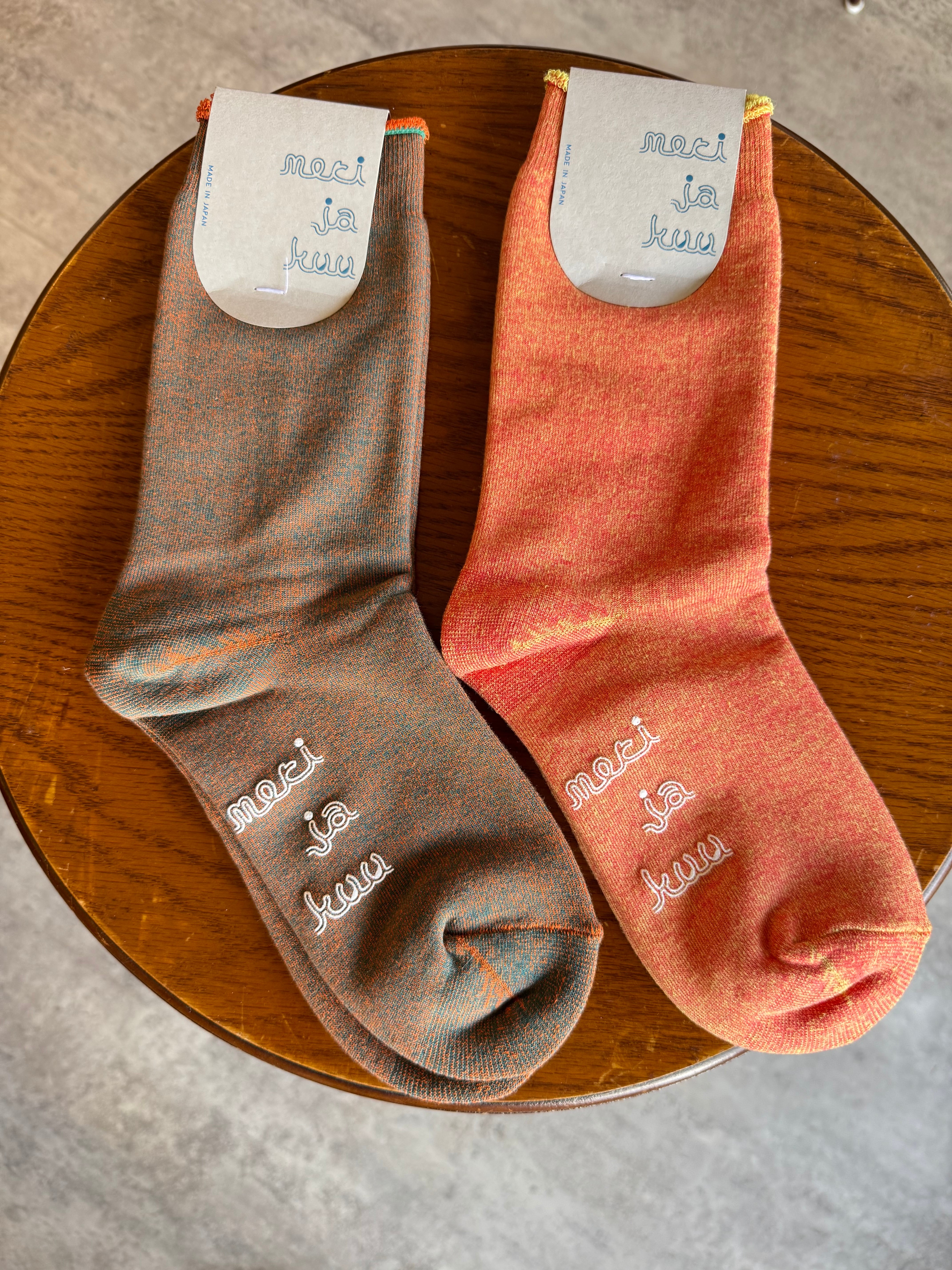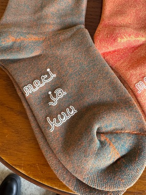 • 滑り止め: 足底にはブランドロゴ「meri ja kuu」が滑り止めプリントとして施されています。