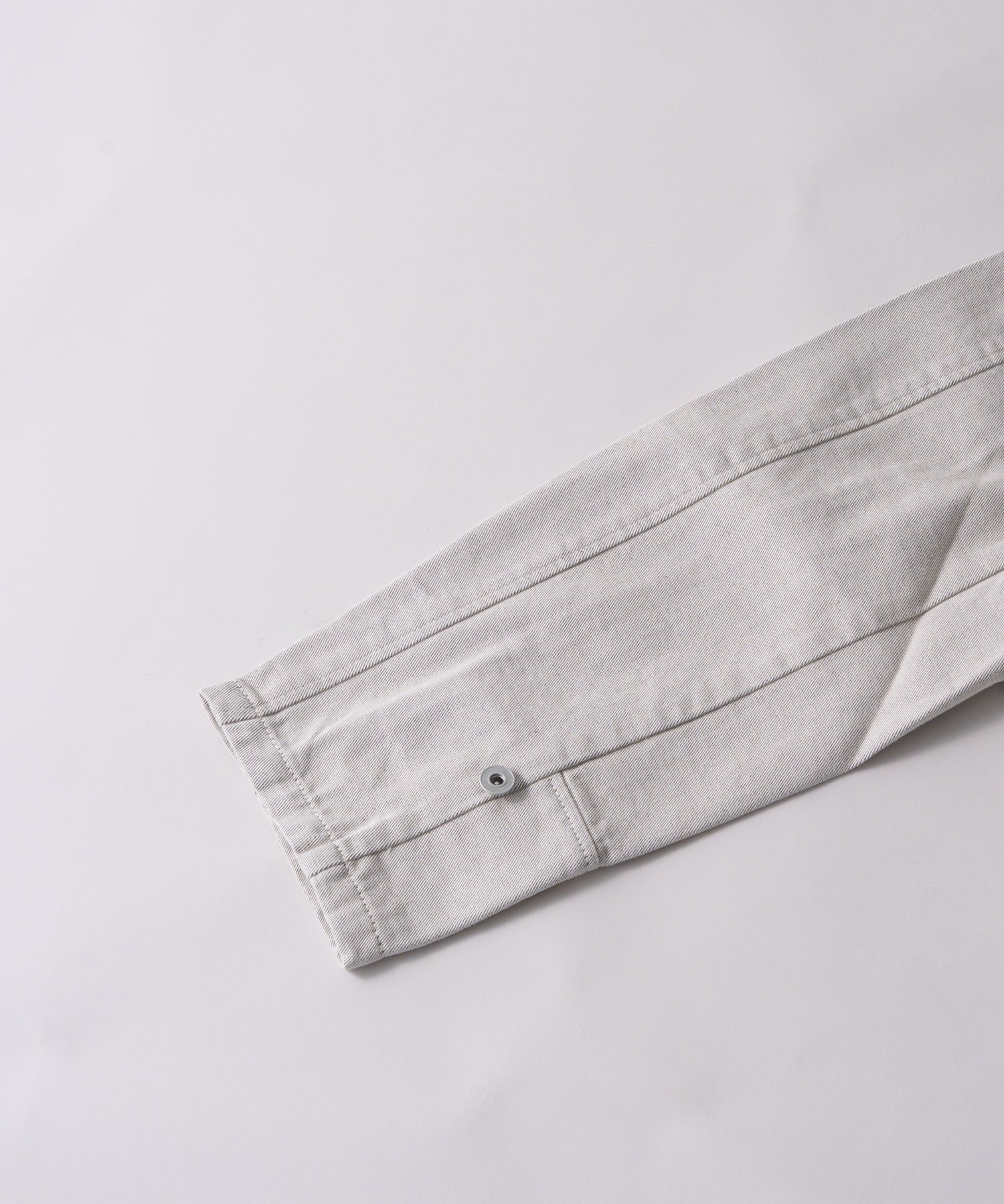 白と黒の糸を縦と横で編み分けており、オフグレーのような色合いを生み、奥行きのある素材感が特徴的です。