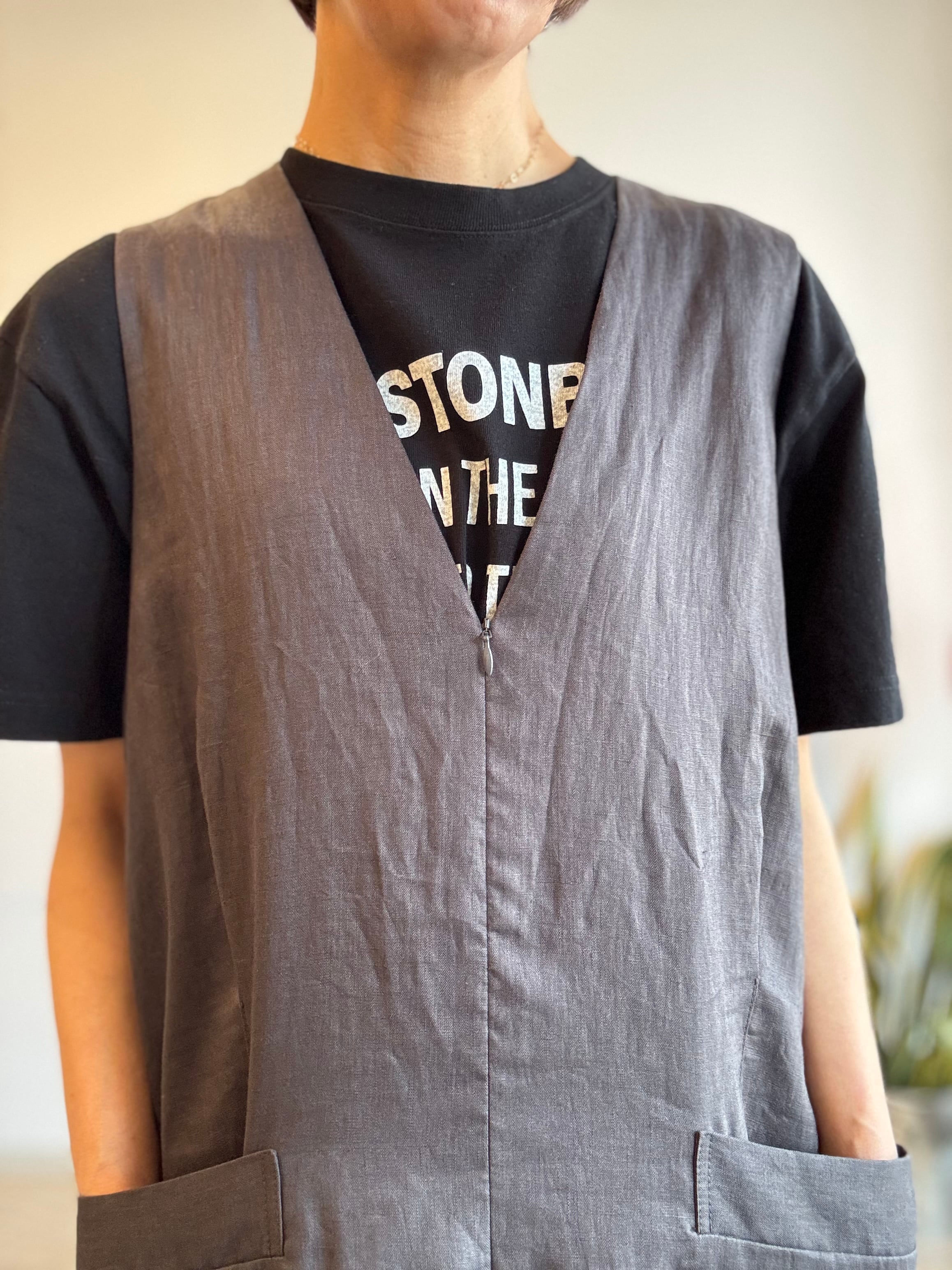 そんな私がこのジャンパースカートを選んだ理由は、モードさと素材の良さ。子供っぽくなりがちなジャンスカを50代の大人女性が素敵に着こなすポイントは、やっぱり素材とシルエットです。フレンチリネンの上品な表情は若い子には出せない、私たち50代以上の大人の魅力をさらに引き出してくれます!